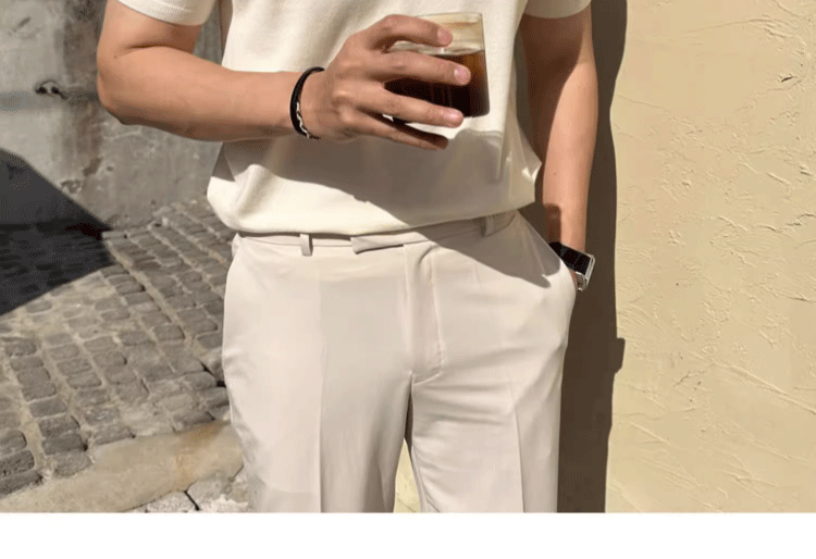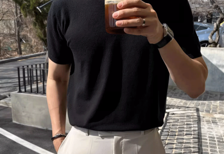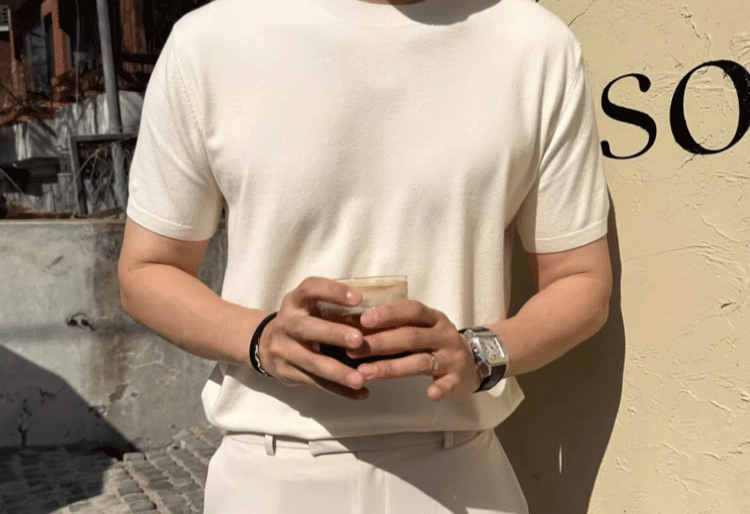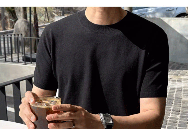 여름 새로운 반팔 스웨터 남성용 단색 아이스 실크 라운드 넥 슬림 비즈니스 조수 티셔츠 대외 무역 국경 도매스토어 가기
