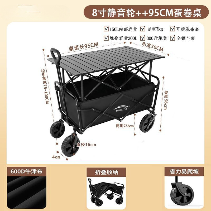 • 블랙 [두꺼운 옥스포드 천/두꺼운 브래킷]-[120CM 에그롤 테이블 세트] 8inch 넓어진 바퀴 + 테이블