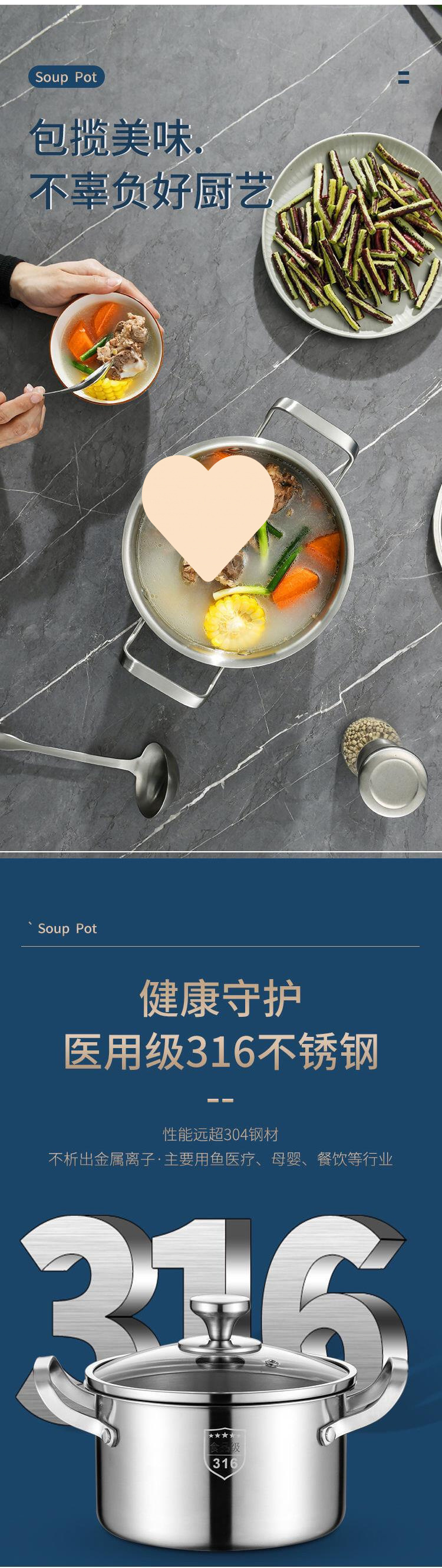 316 스테인레스 스틸 수프 냄비 두꺼운 가정용 기선 죽 냄비 스튜 냄비 바이노럴 가스 스토브 유도 쿠커를위한 특별스토어 가기