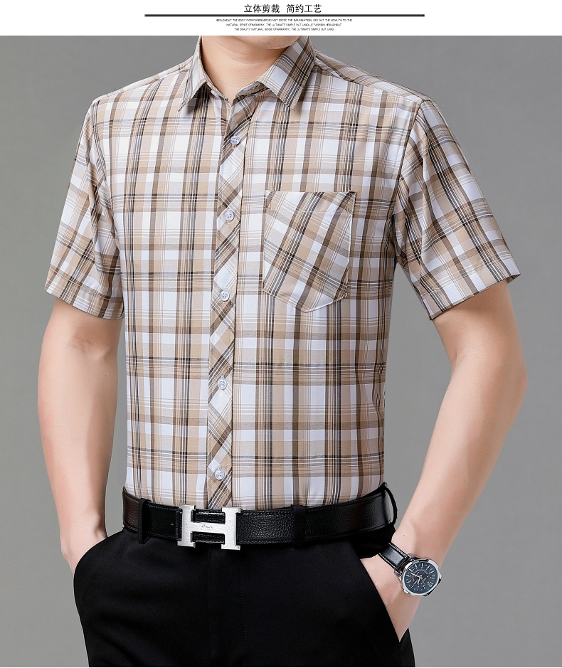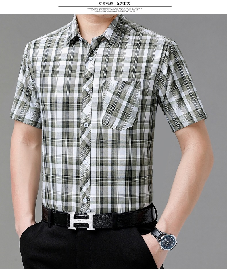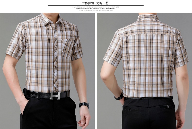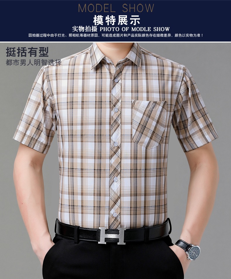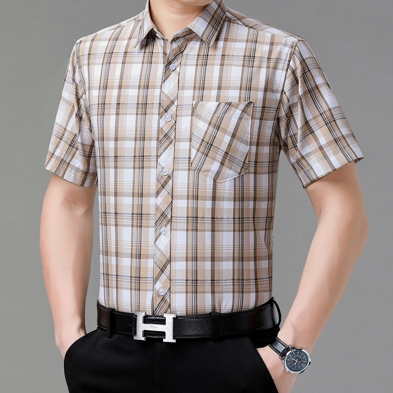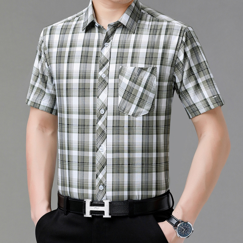 가벼운 고급 고급 뽕나무 실크 비 다림질 여름 남성 주름 방지 클래식 격자 무늬 셔츠 비즈니스 캐주얼 중년 및 노인 셔츠스토어 가기