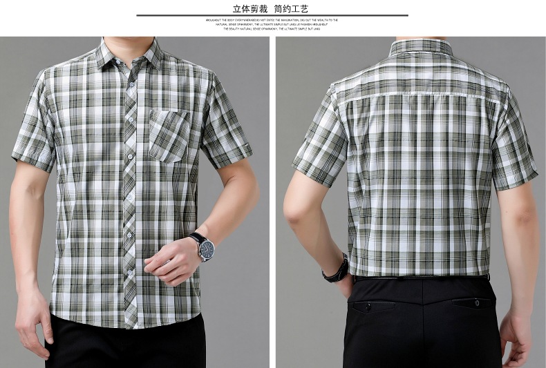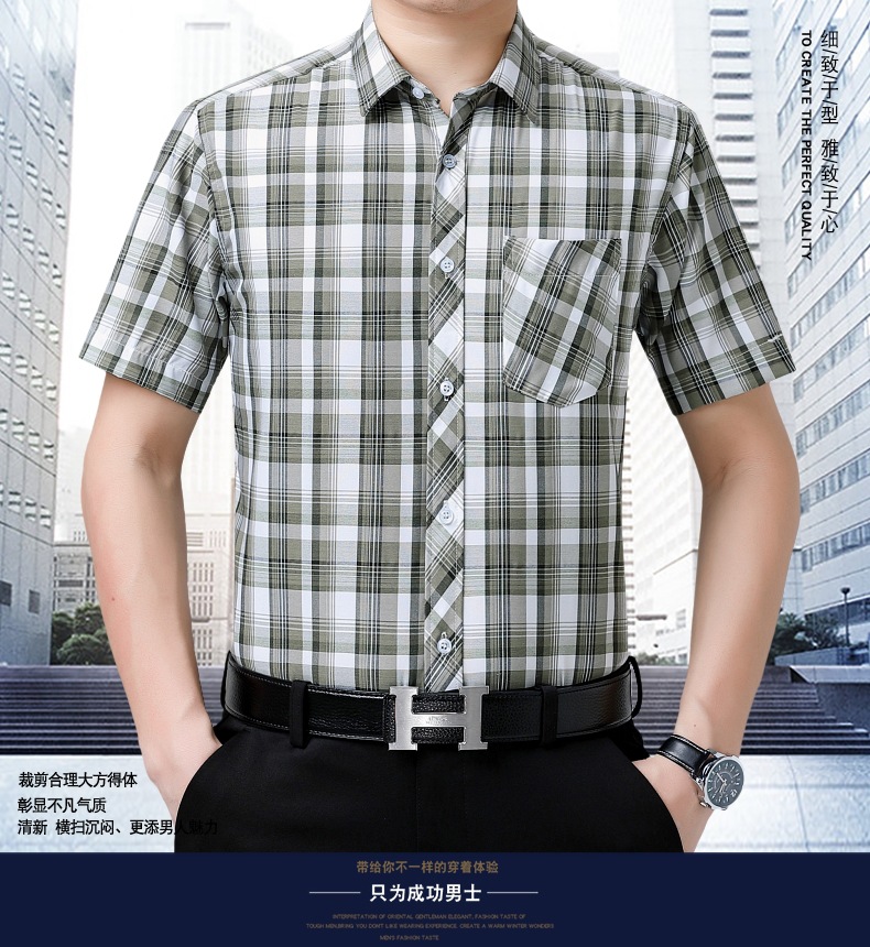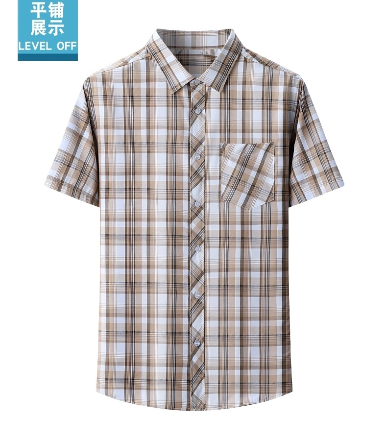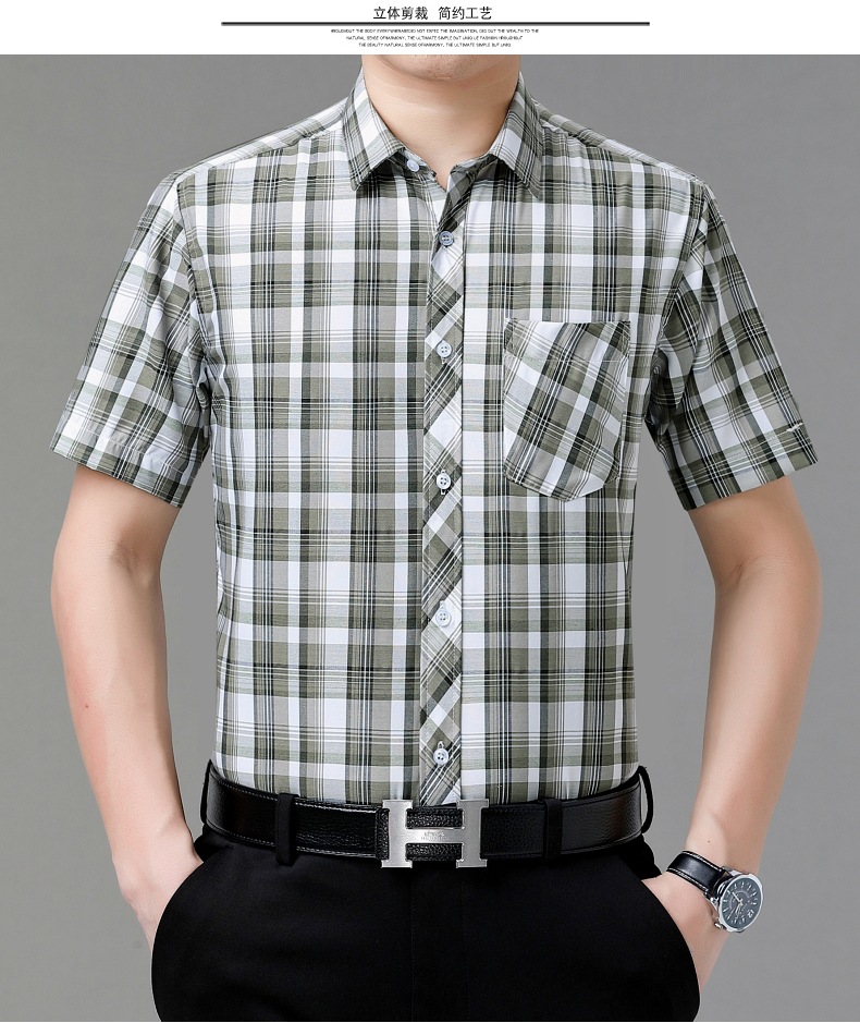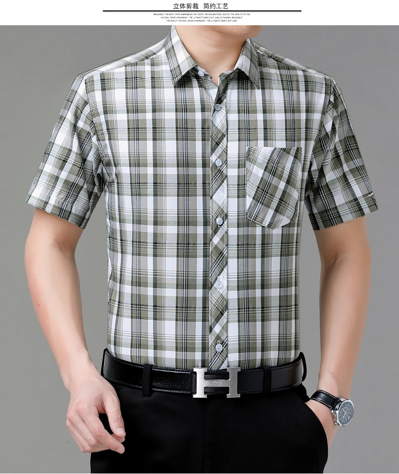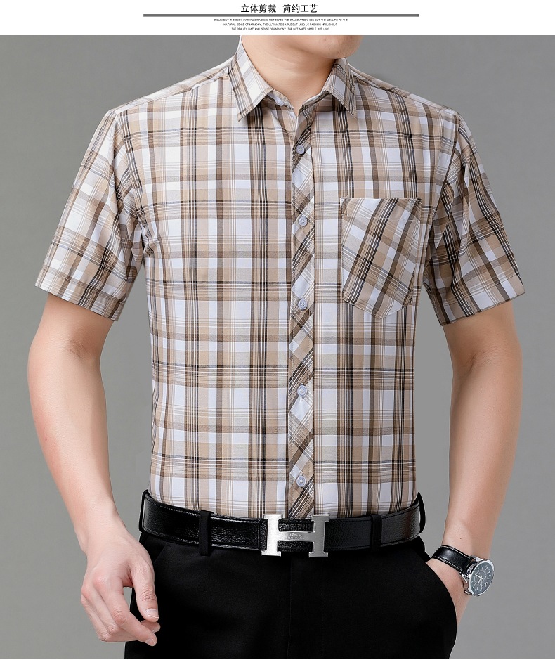 가벼운 고급 고급 뽕나무 실크 비 다림질 여름 남성 주름 방지 클래식 격자 무늬 셔츠 비즈니스 캐주얼 중년 및 노인 셔츠스토어 가기