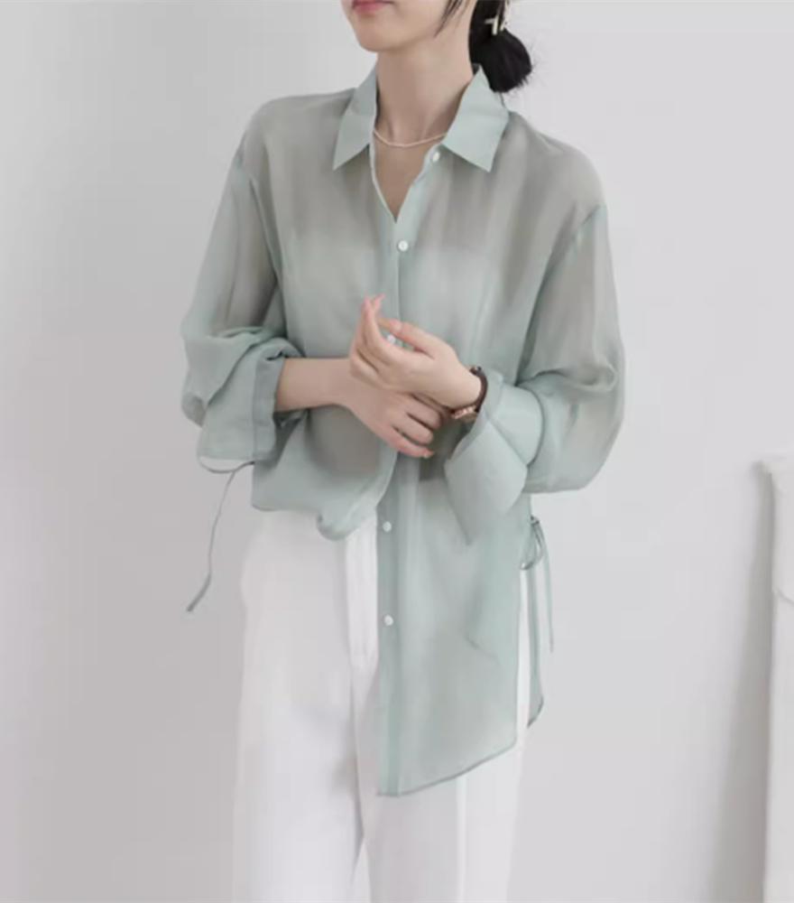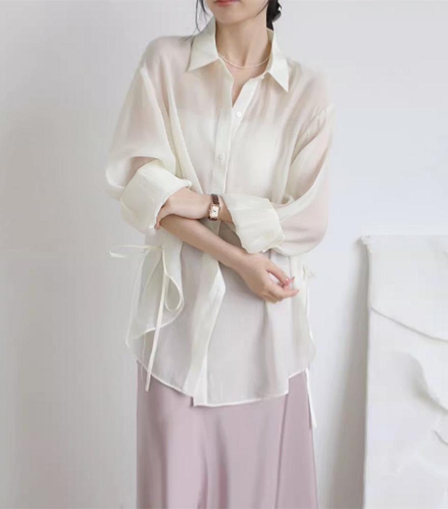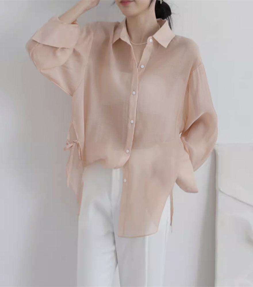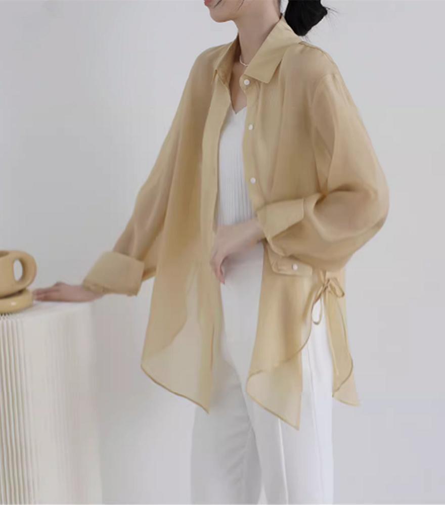 아이스 실크 쉬폰 셔츠 여자 여름 2025 새로운 얇은 외부 스트랩 카디건 선 스크린 코트 탑스토어 가기