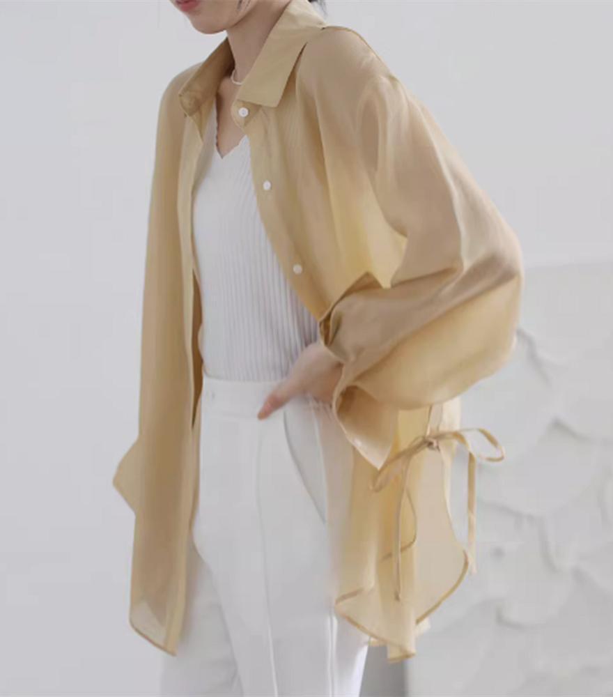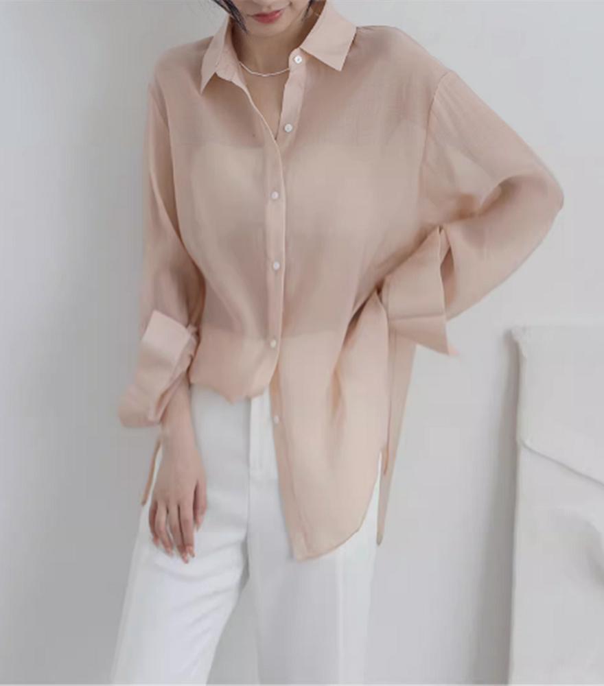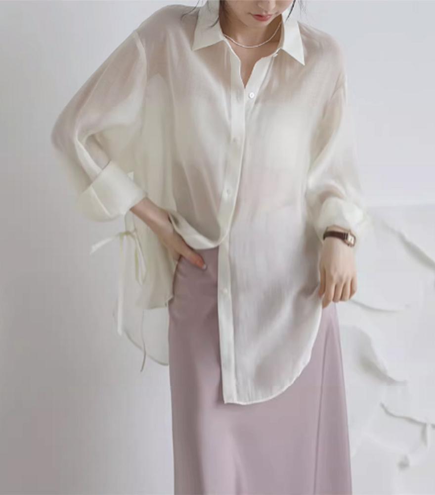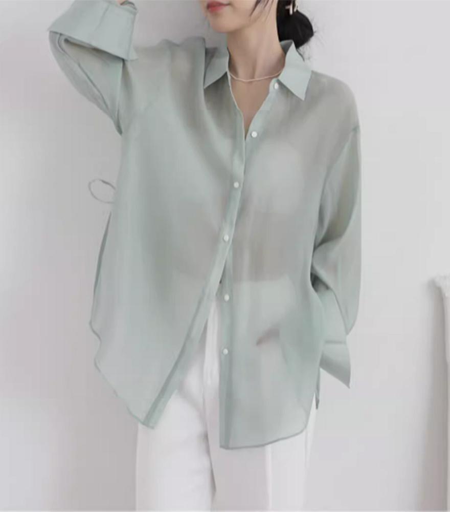 아이스 실크 쉬폰 셔츠 여자 여름 2025 새로운 얇은 외부 스트랩 카디건 선 스크린 코트 탑스토어 가기