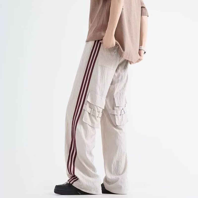 아메리칸 스타일 레트로 스트라이프 잡힌 바지 남자 트렌디 브랜드 하이 스트리트 스포츠 바지 스트레이트 루즈 캐주얼 롱 바지 아메리칸 스타일 레트로