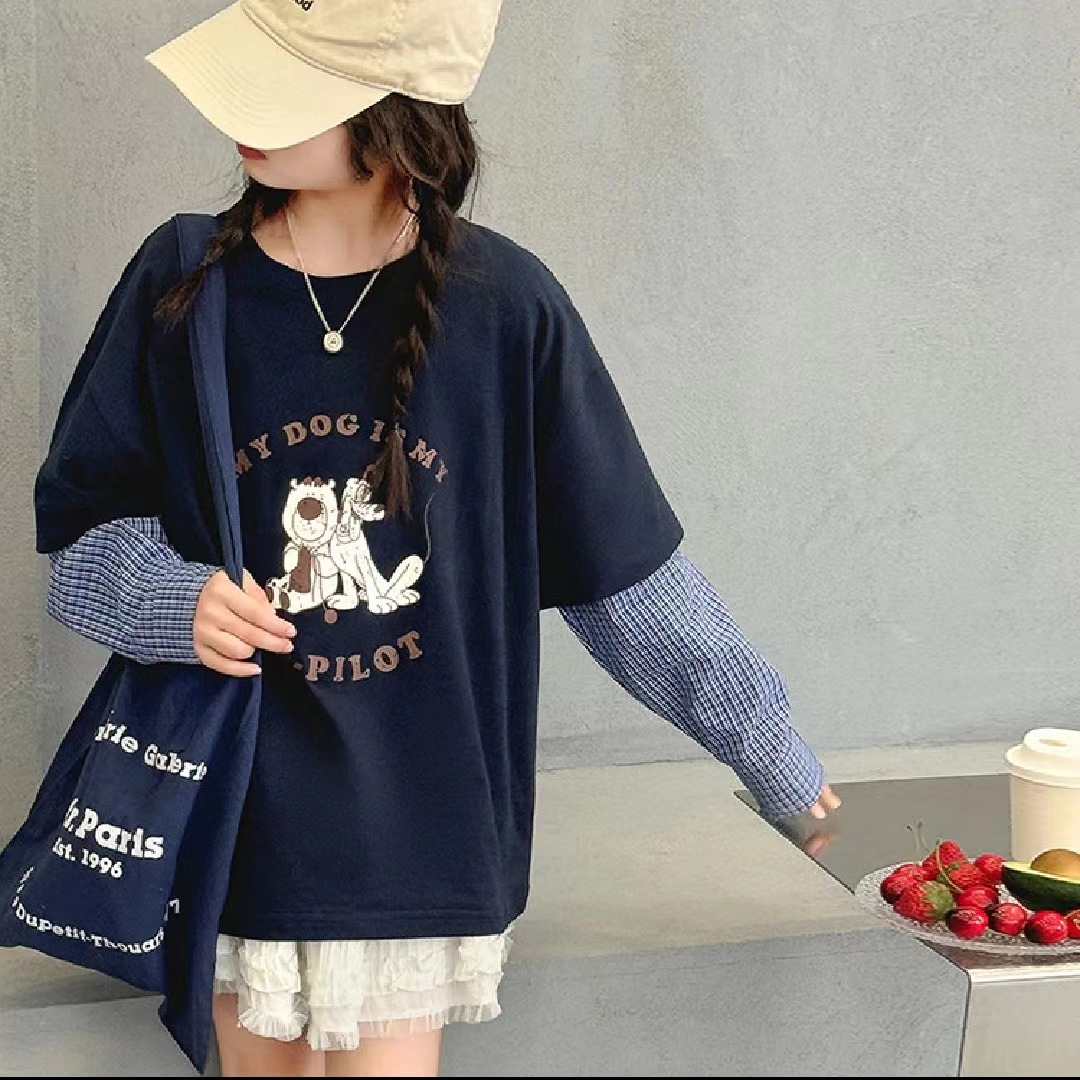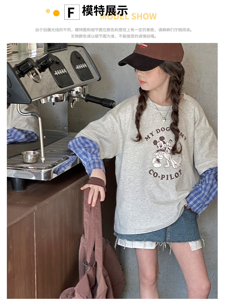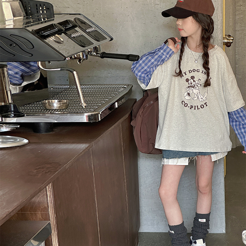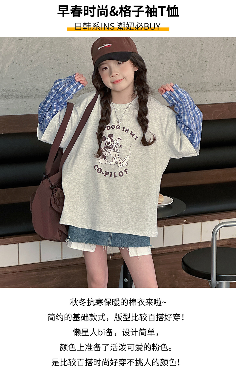 소녀 긴팔 티셔츠 봄 2025 새로운 어린이 서양식 베이스 셔츠 소녀 큰 어린이 봄 가짜 투피스 탑스토어 가기