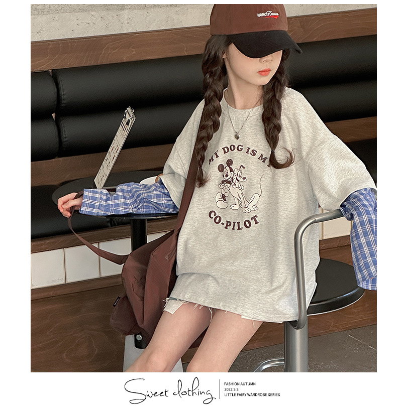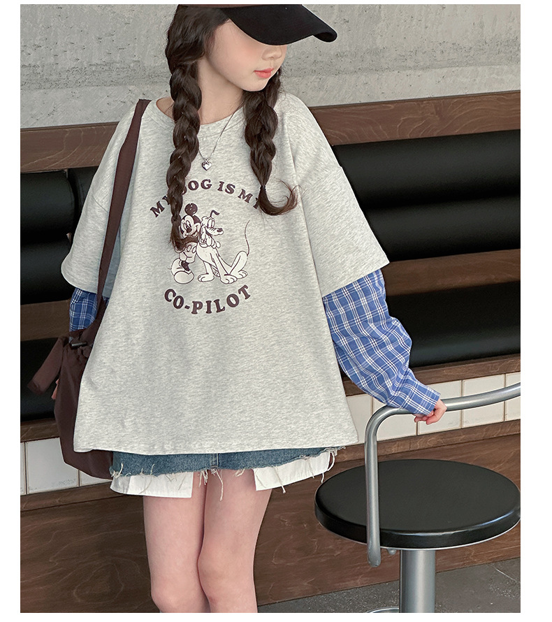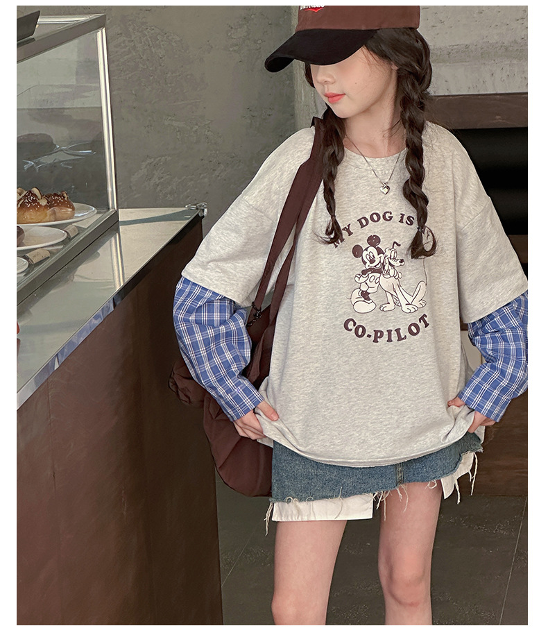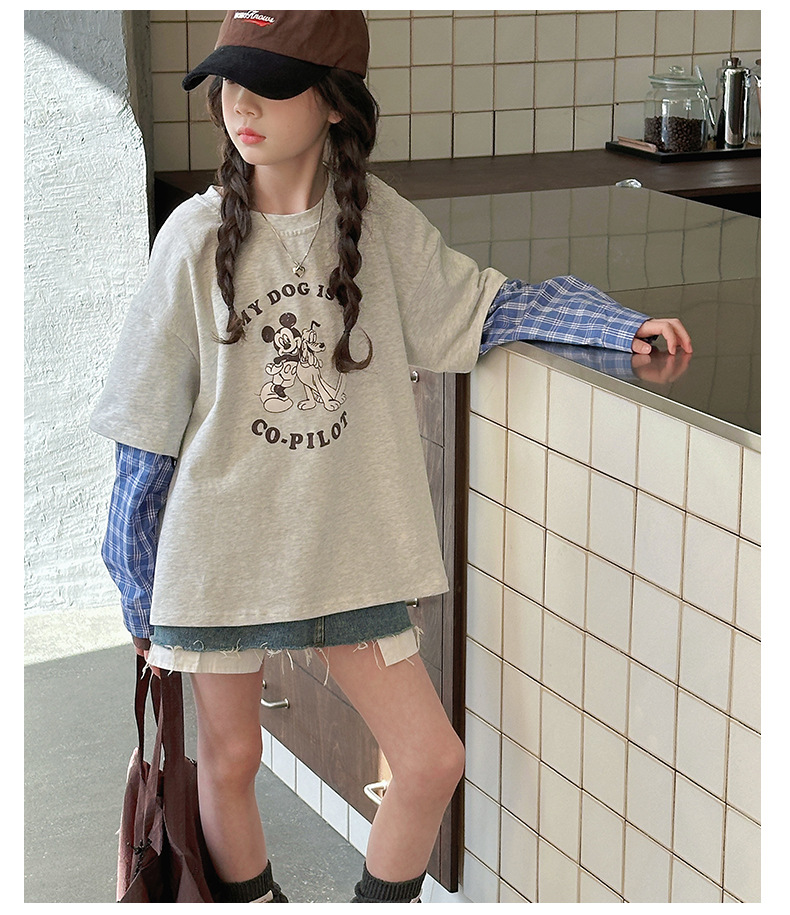 소녀 긴팔 티셔츠 봄 2025 새로운 어린이 서양식 베이스 셔츠 소녀 큰 어린이 봄 가짜 투피스 탑스토어 가기