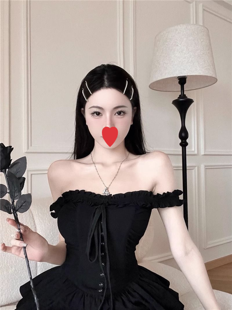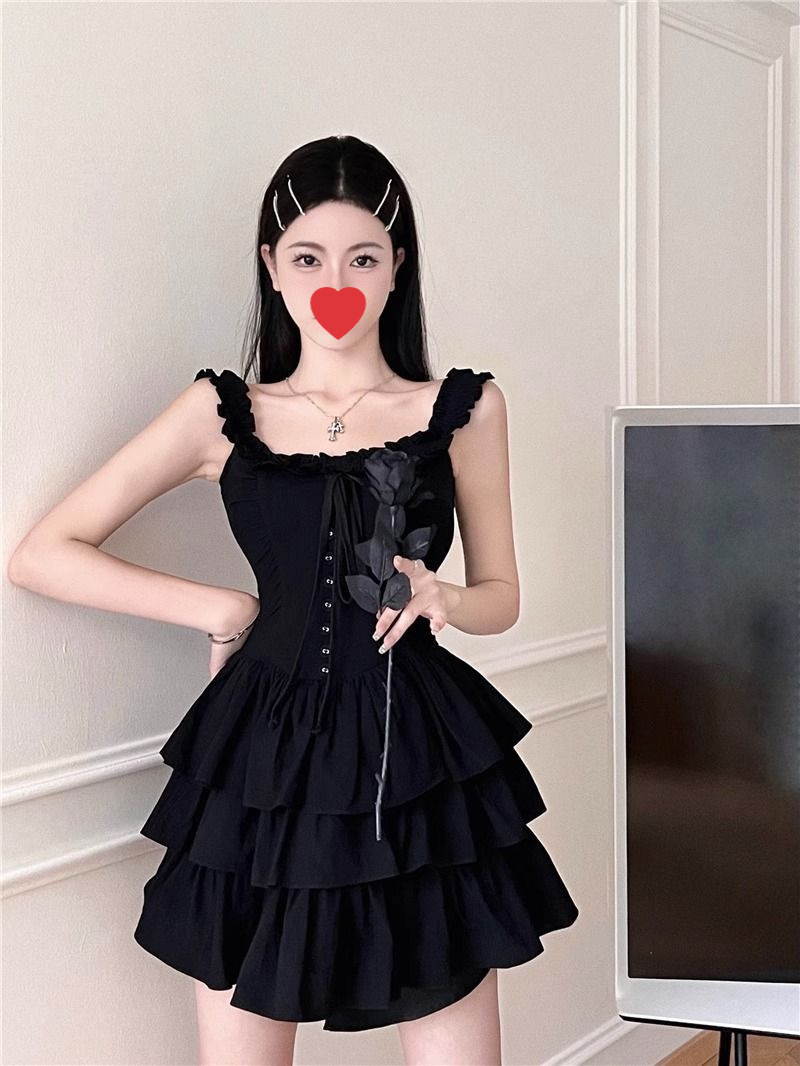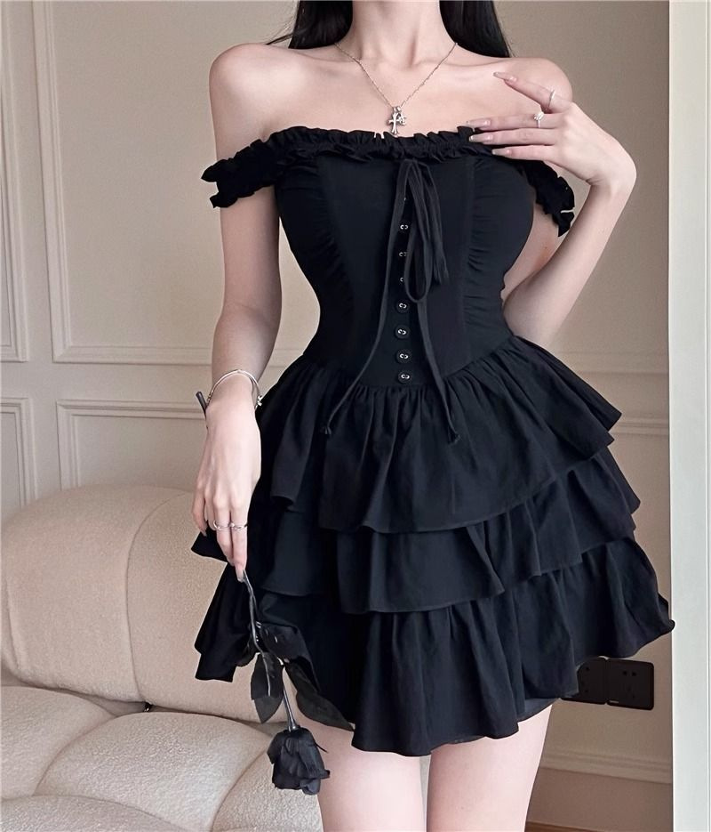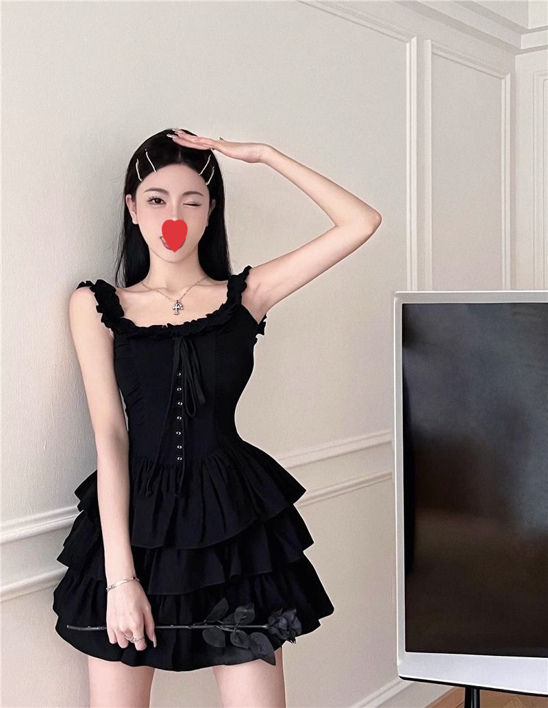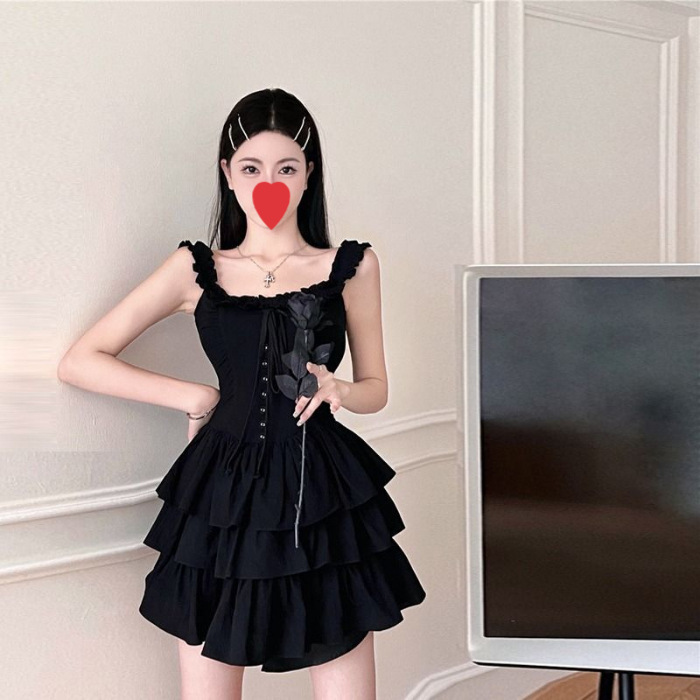 밀크 후푸 원피스 허리 달콤한 시원한 뜨거운 소녀 스타일 오프 숄더 하이 엔드 블랙 스트랩 푹신한 케이크 스커트 여성 패션스토어 가기