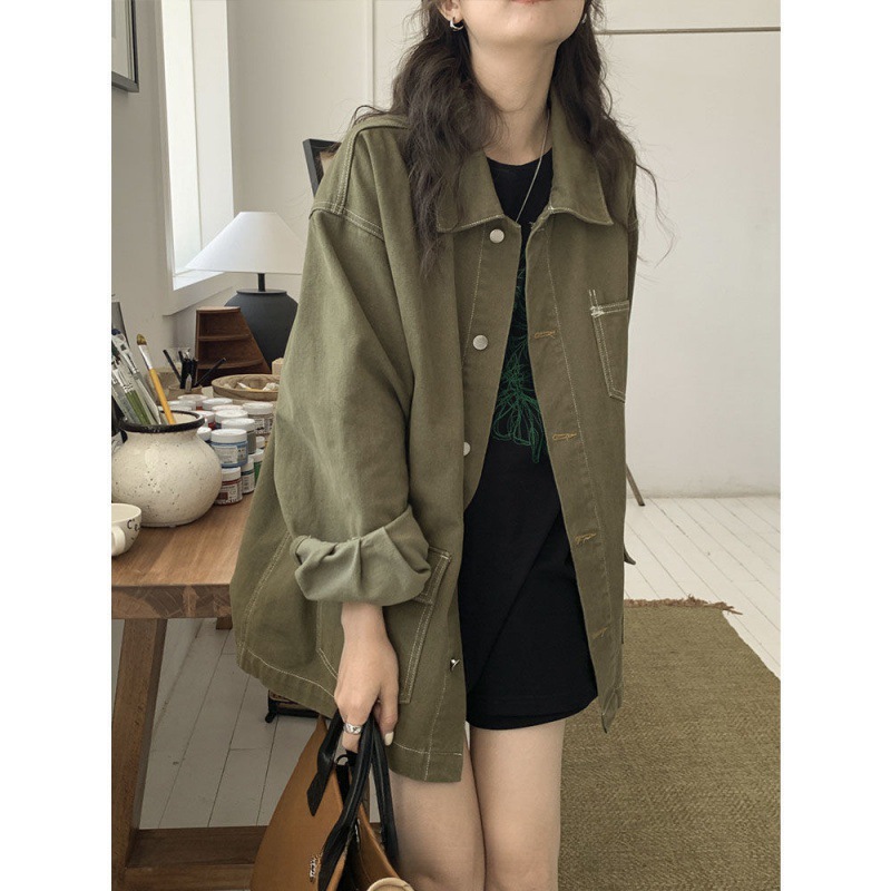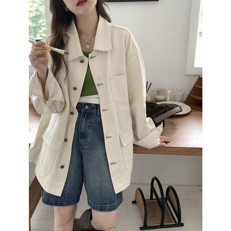 데님 코트 여자 2025 년 봄과 가을 새로운 싱글 브레스트 느슨한 긴팔 캐주얼 트렌디 니쉬 탑