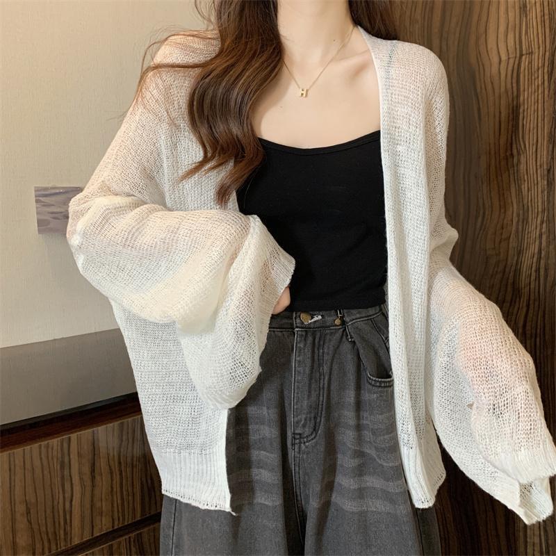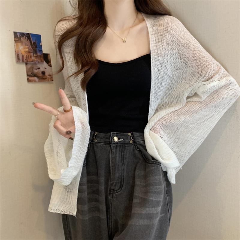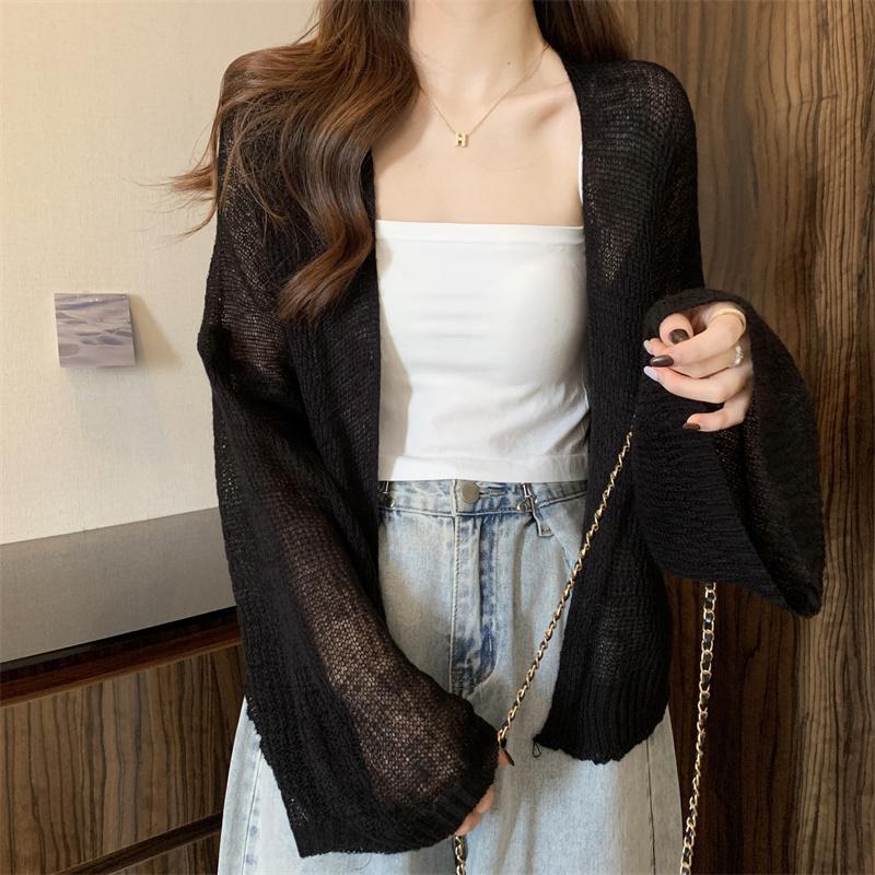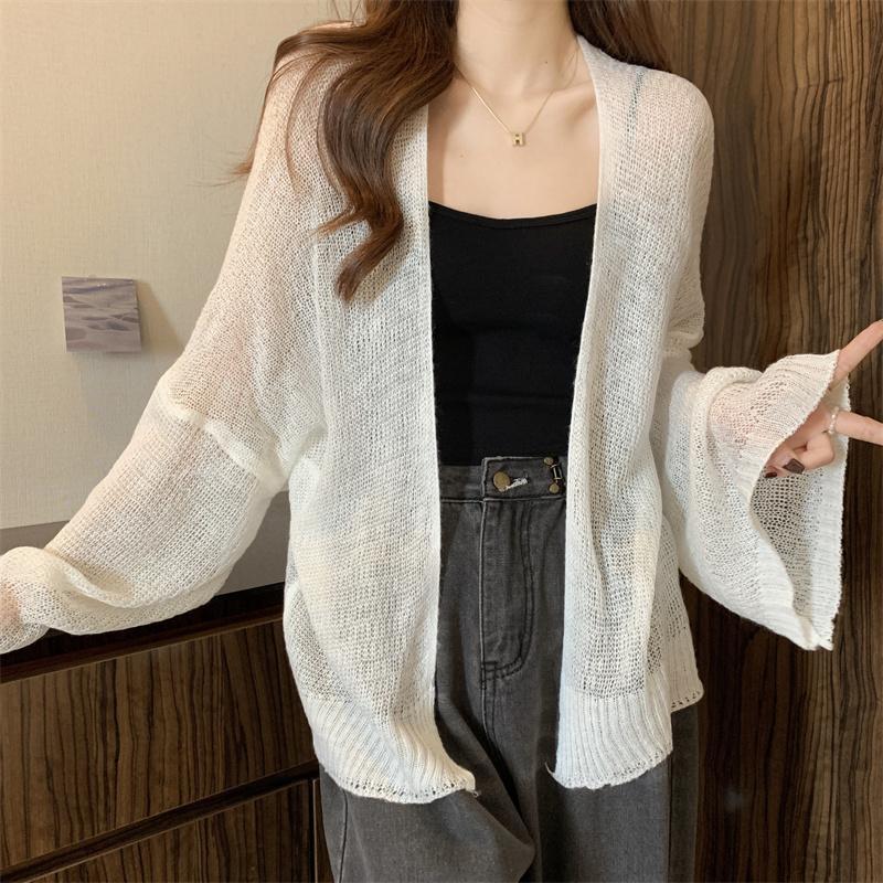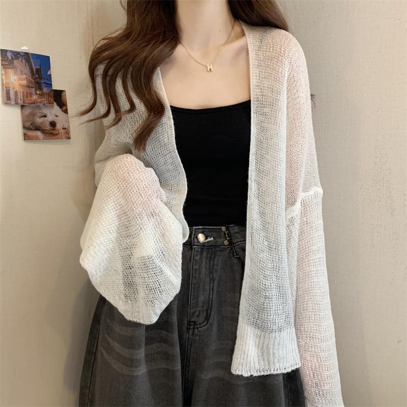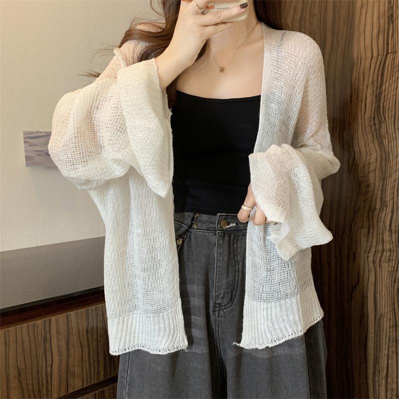 봄과 여름 얇은 니트 카디건 외부 피팅 여성 플러스 사이즈 통통녀 슬리밍 느슨한 올 매치 태양 보호 탑 에어컨 셔츠 재킷