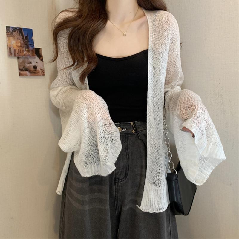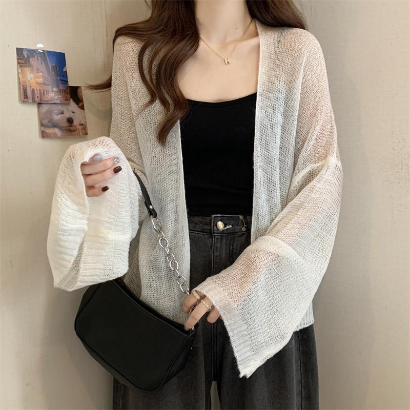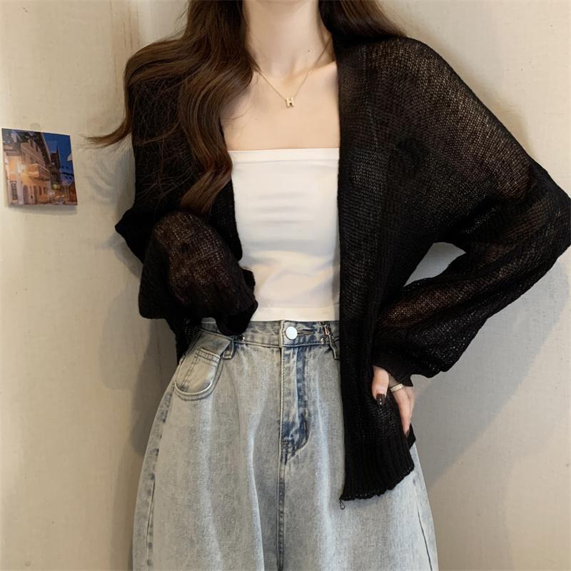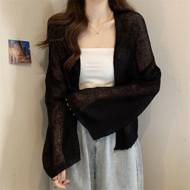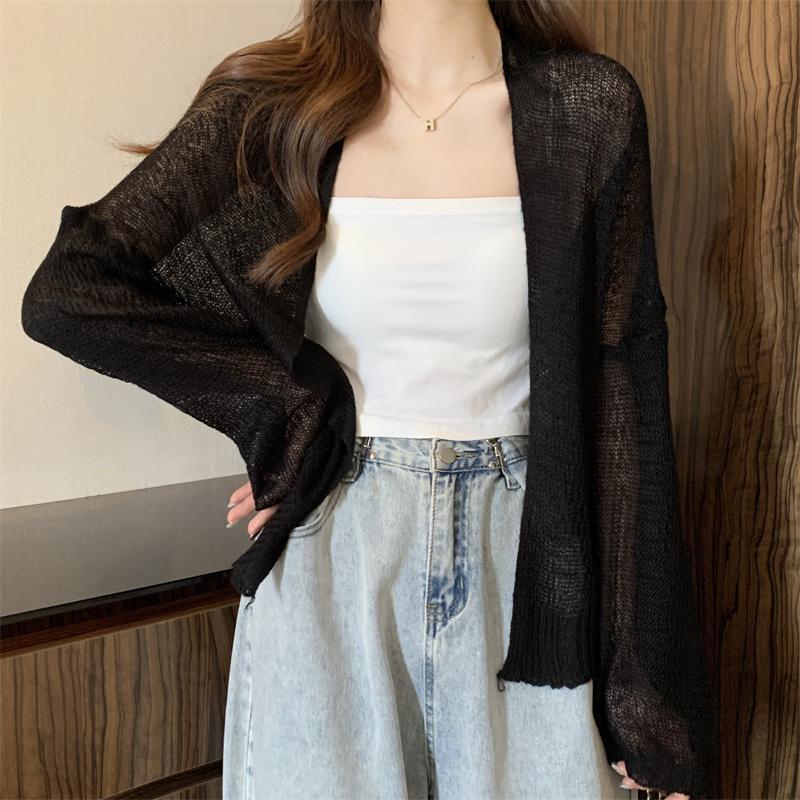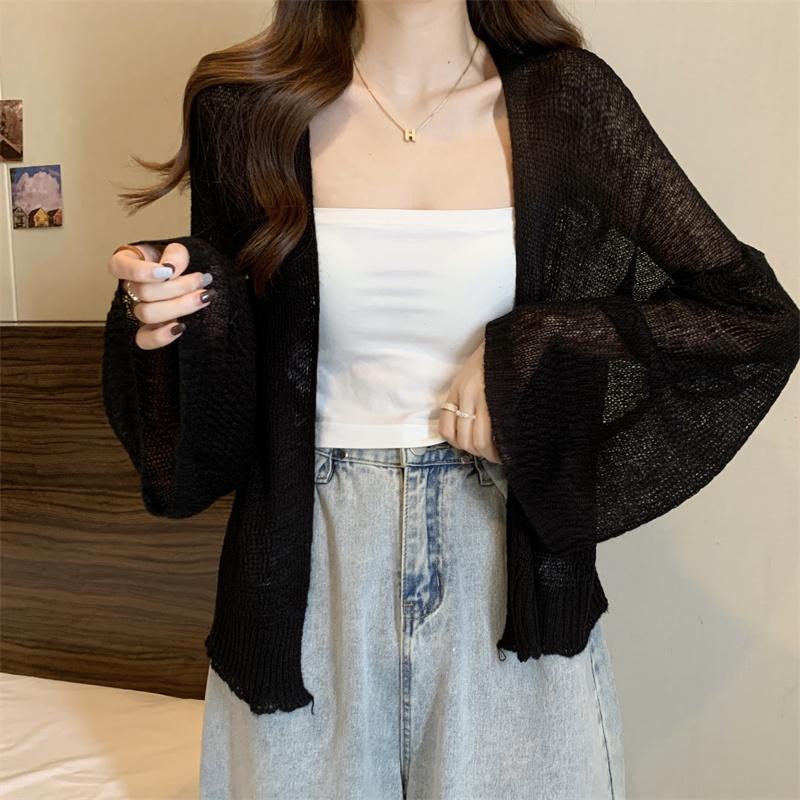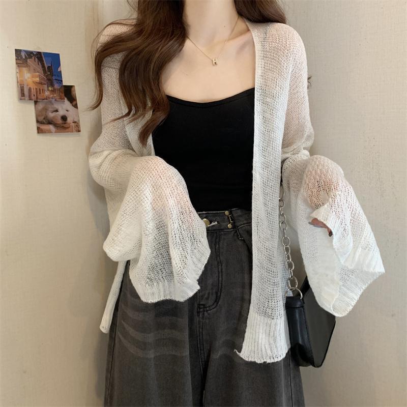 봄과 여름 얇은 니트 카디건 외부 피팅 여성 플러스 사이즈 통통녀 슬리밍 느슨한 올 매치 태양 보호 탑 에어컨 셔츠 재킷