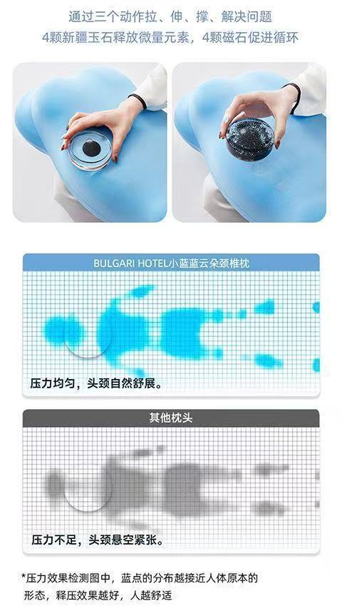 • 베갯잇과 지퍼백이 포함된 작은 파란색 구름 목 자석 베개