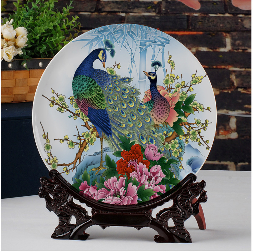 Jingdezhen 세라믹 공작 모란 장식 플레이트 홈 오피스 거실 TV 내각 유럽 창조적 인 공예