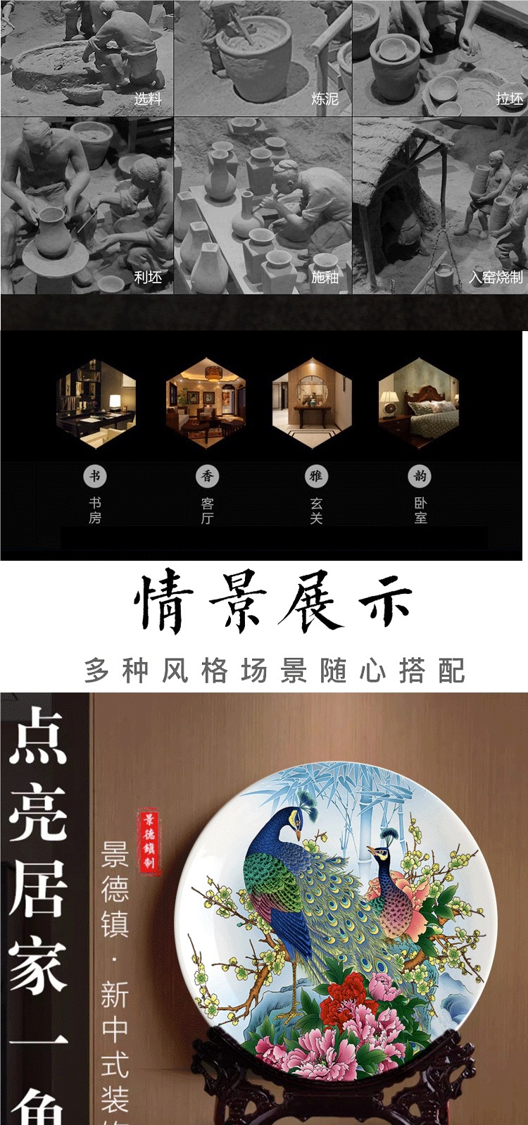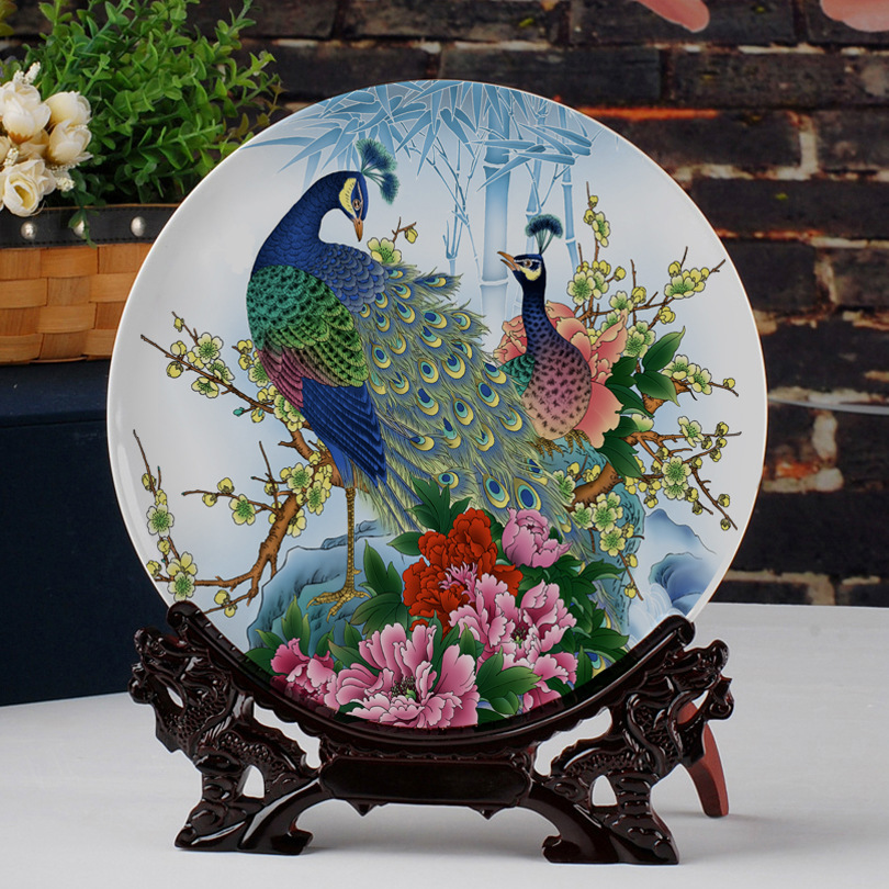 Jingdezhen 세라믹 공작 모란 장식 플레이트 홈 오피스 거실 TV 내각 유럽 창조적 인 공예스토어 가기