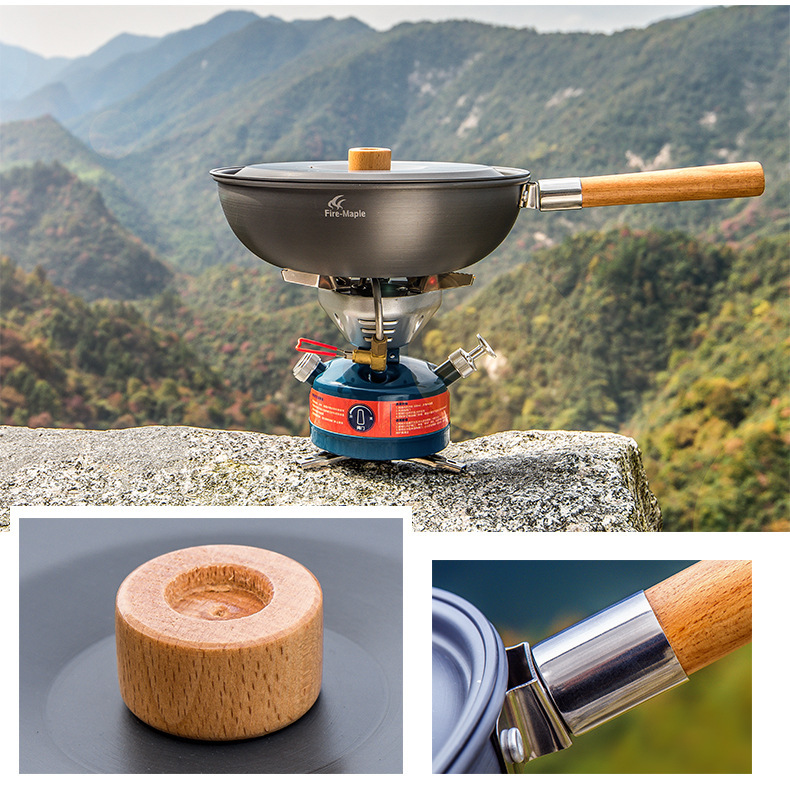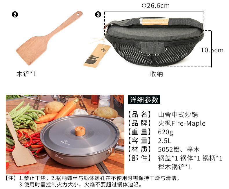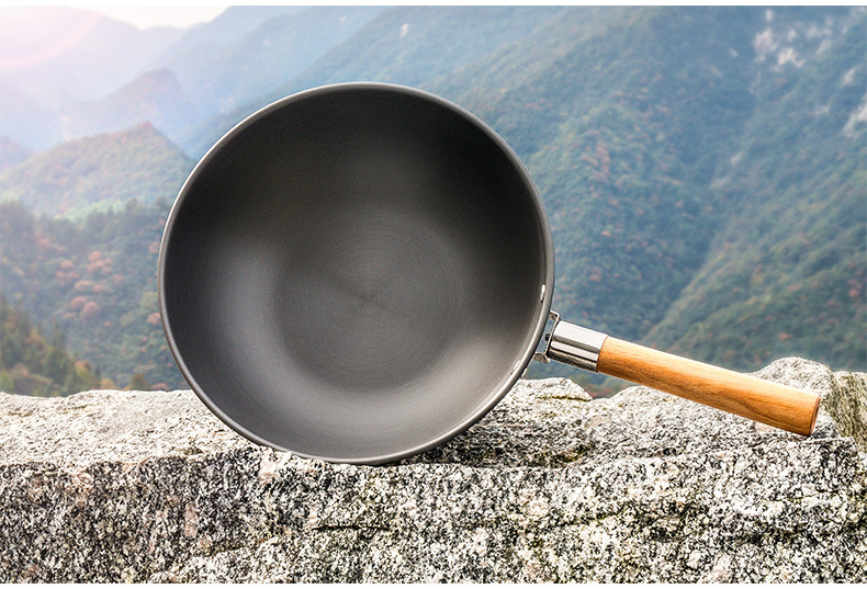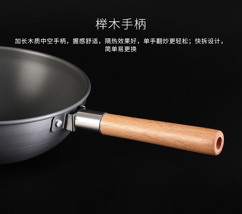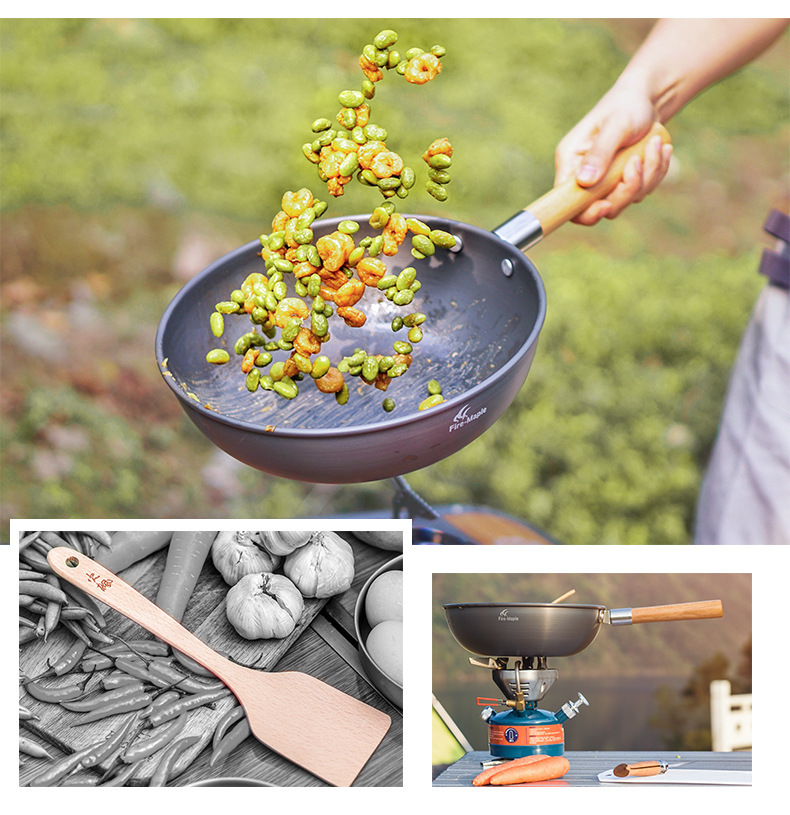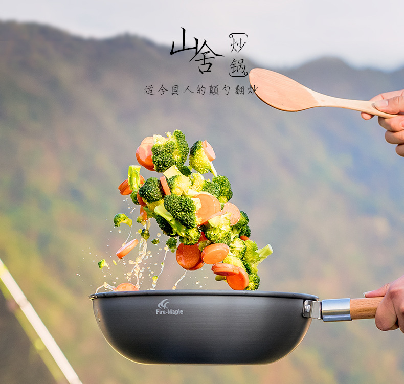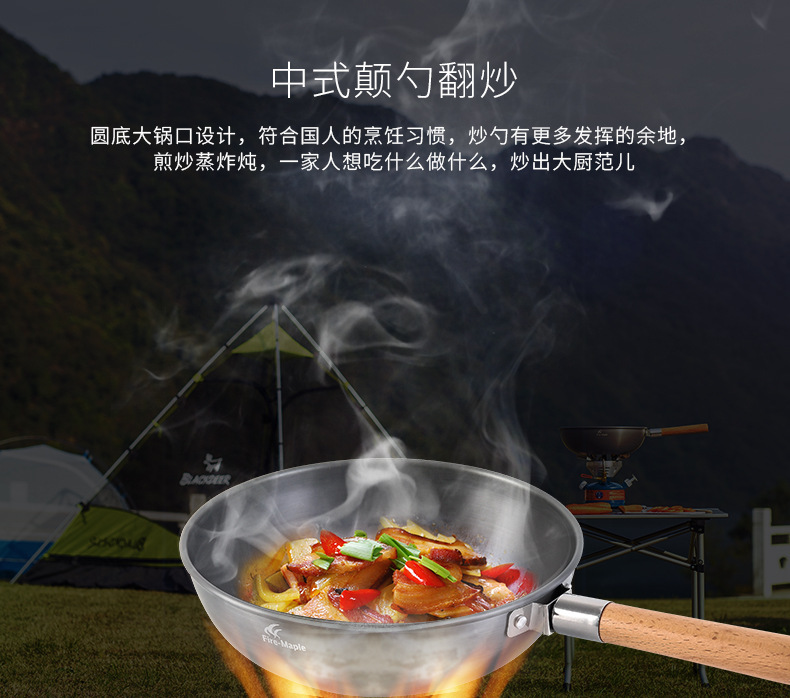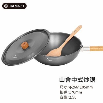 火枫山舍中式炒锅户外野营单锅长榉木手柄