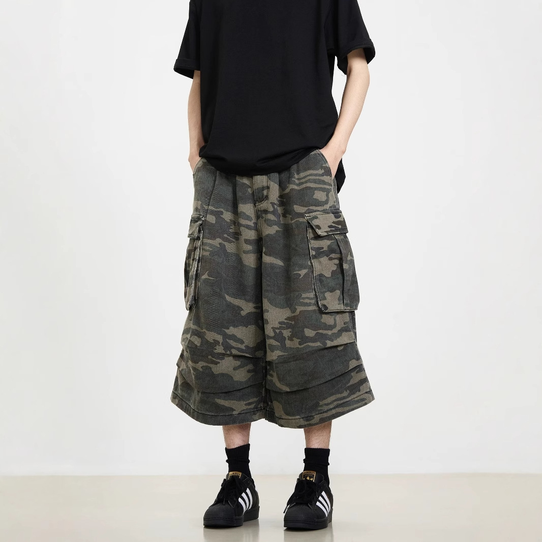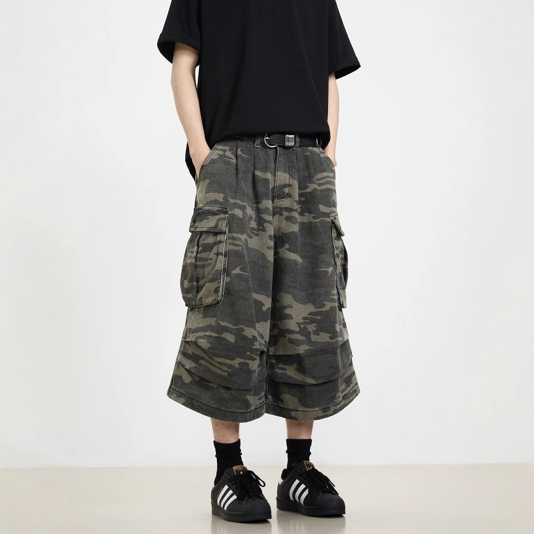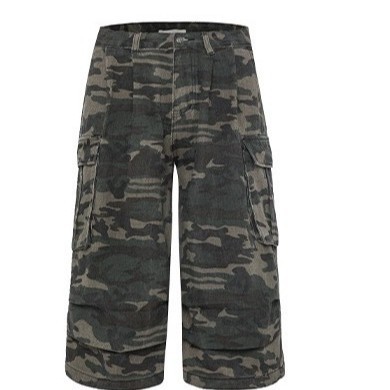 여름 미국 포켓 넓은 다리 위장 데님 자른 바지 새로운 도착 유행 브랜드 느슨한 캐주얼 자른 바지스토어 가기
