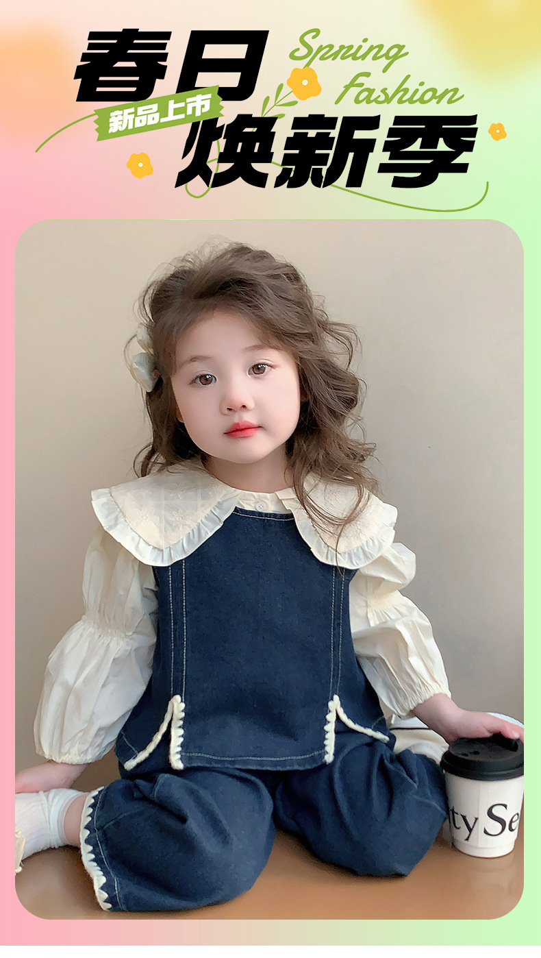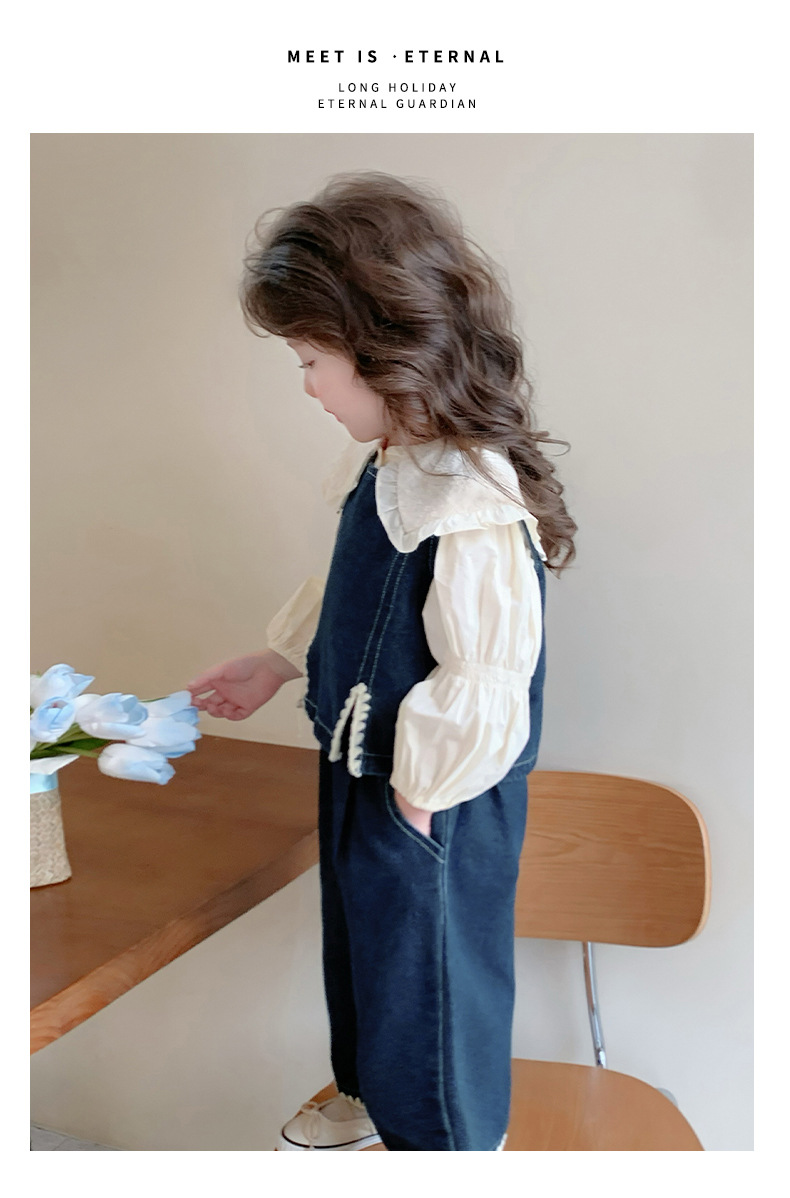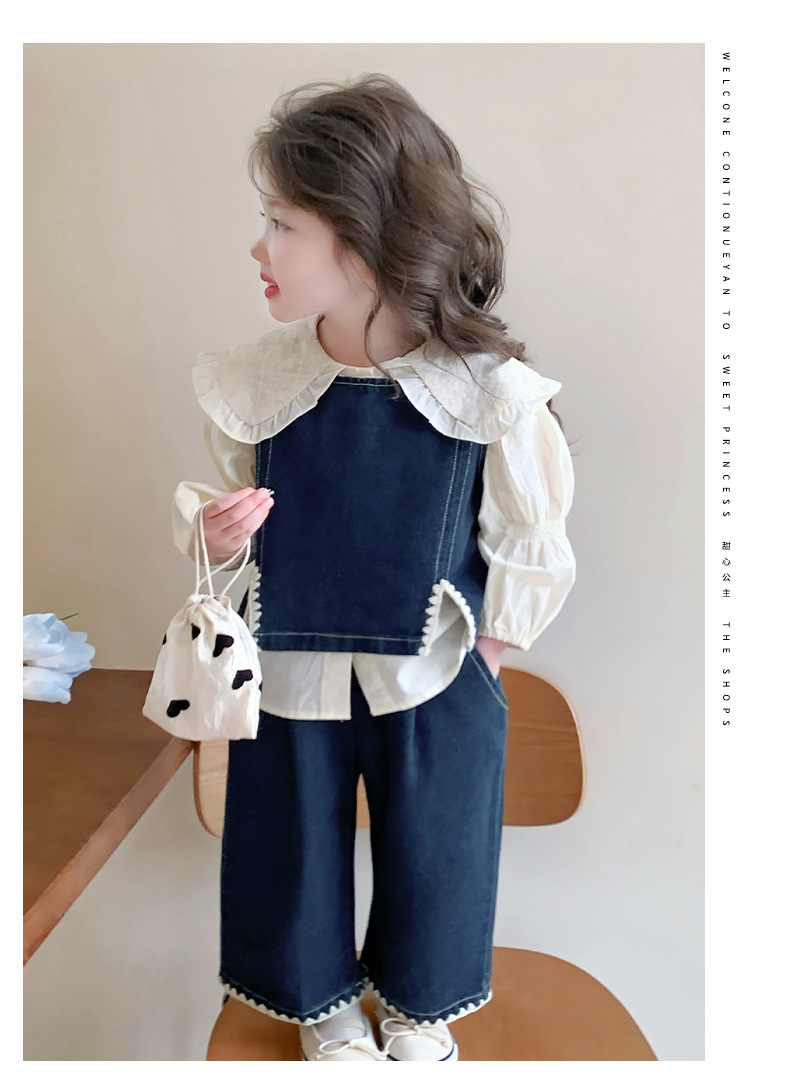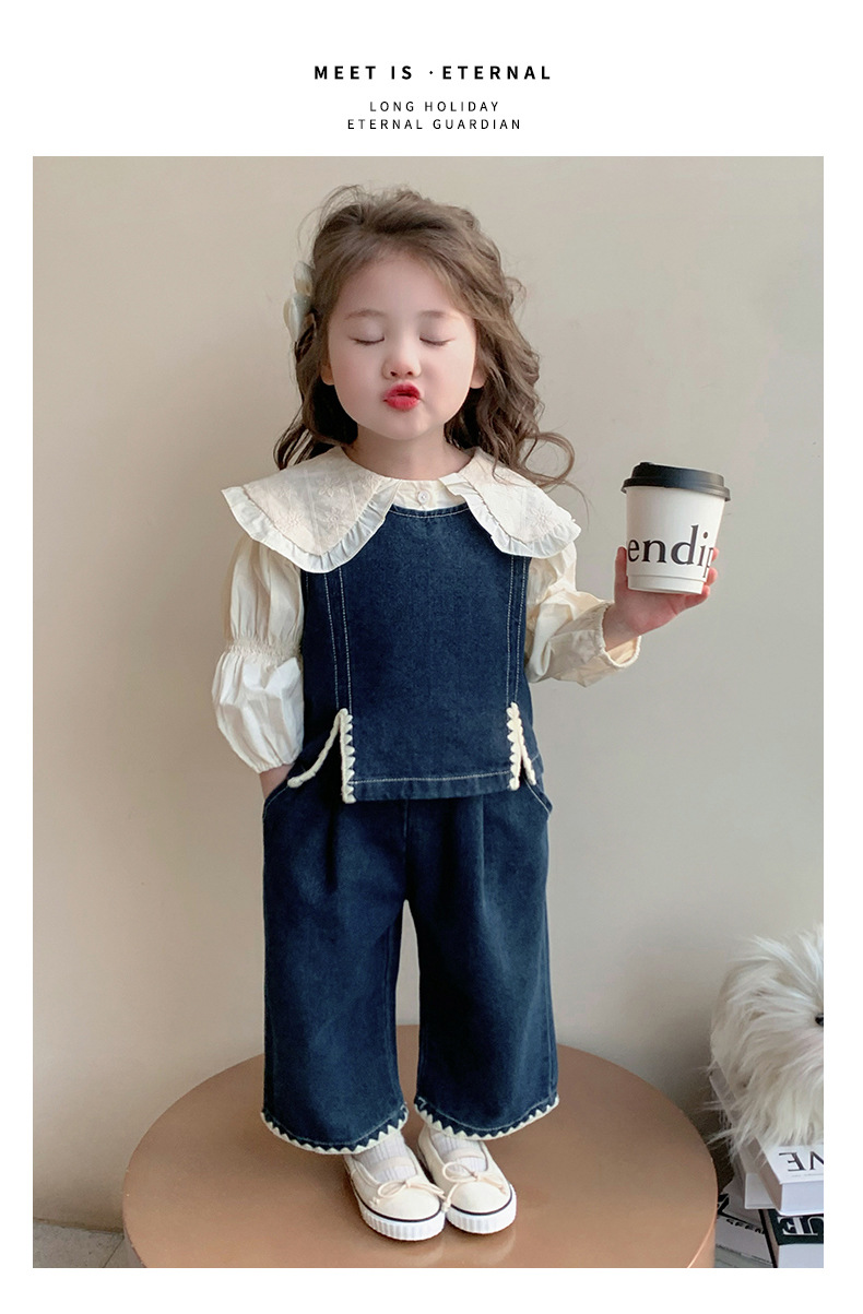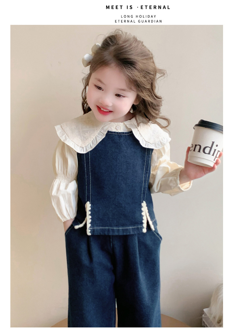 소녀의 봄 세트 2025 봄 원피스 한국 착용 어린이 데님 조끼 데님 넓은 다리 바지 외국 유행스토어 가기
