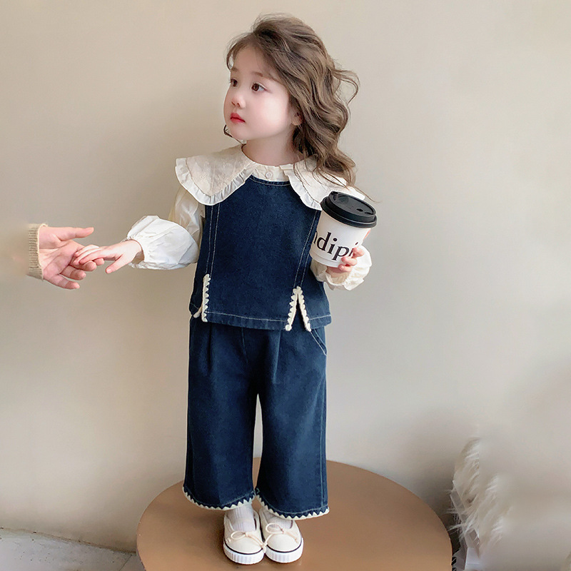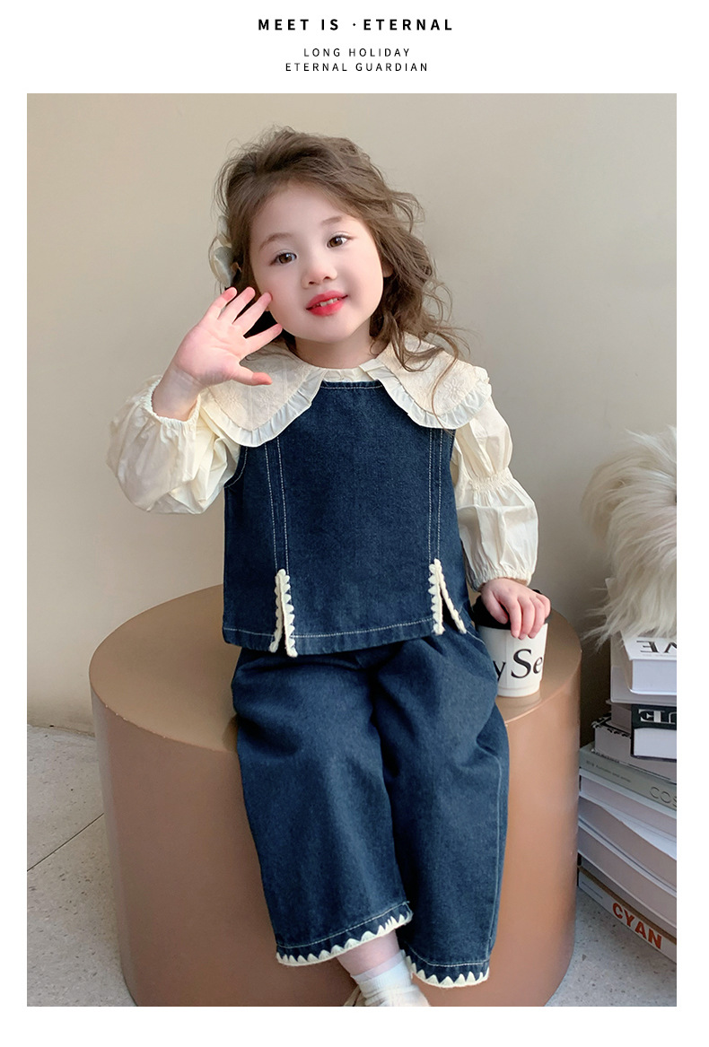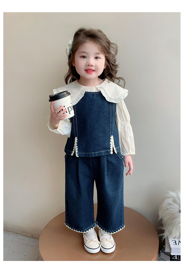 소녀의 봄 세트 2025 봄 원피스 한국 착용 어린이 데님 조끼 데님 넓은 다리 바지 외국 유행