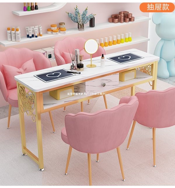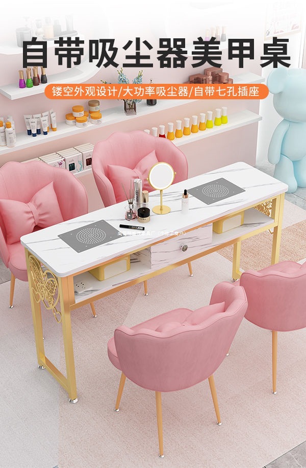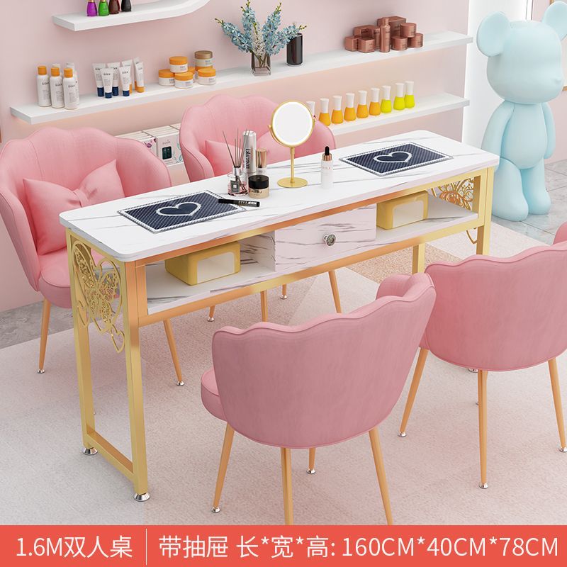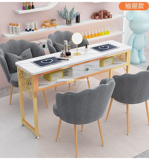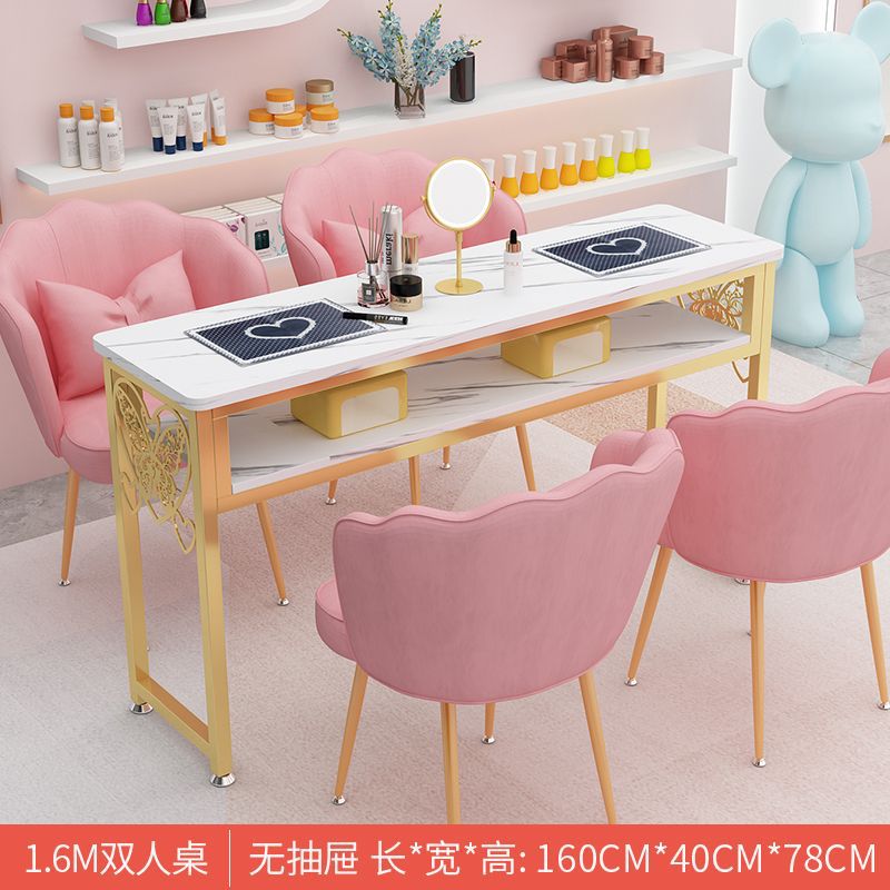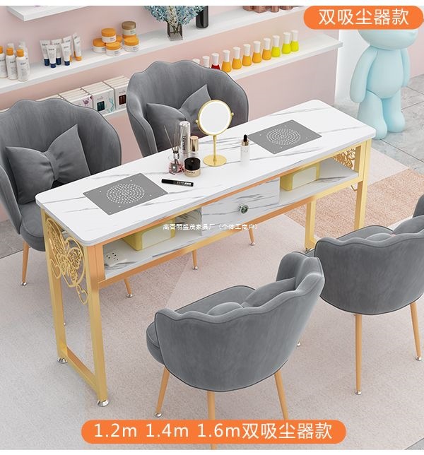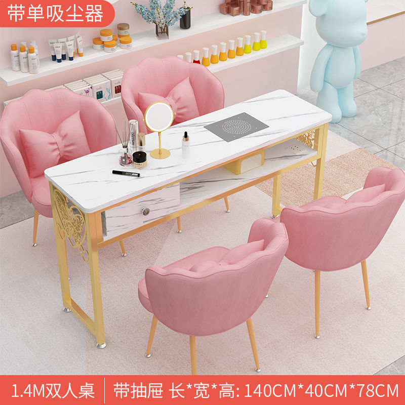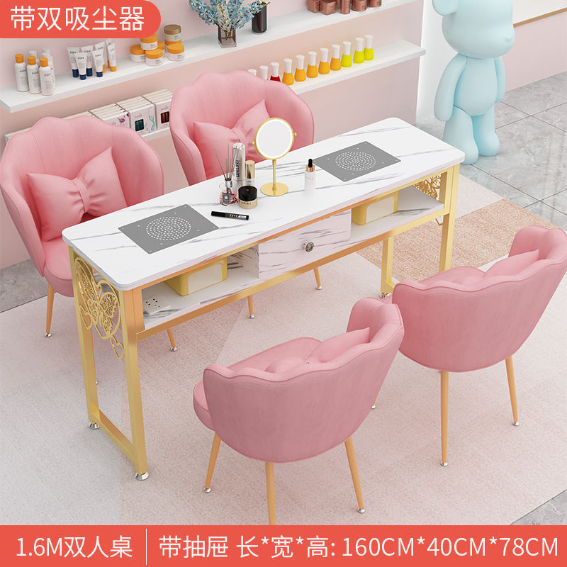 가벼운 고급 고성능 진공 청소기 네일 아트 테이블 및 의자 모방 대리석 세트 더블 인터넷 연예인 테이블 경제적 인 네일 아트 샵