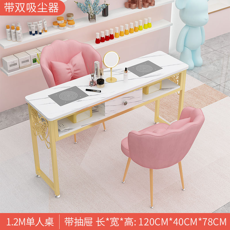 가벼운 고급 고성능 진공 청소기 네일 아트 테이블 및 의자 모방 대리석 세트 더블 인터넷 연예인 테이블 경제적 인 네일 아트 샵스토어 가기
