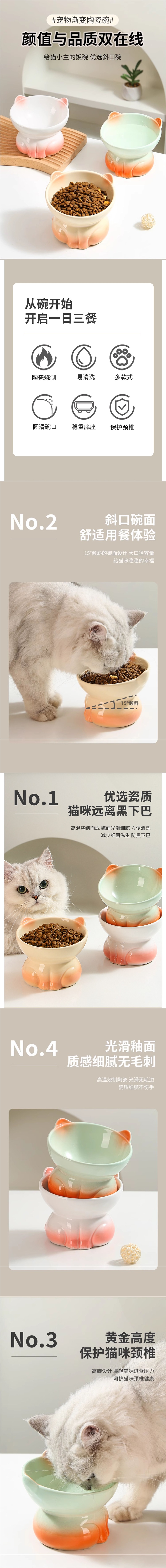 세라믹 고양이 그릇 높은 발 귀여운 고양이 그릇 애완 동물 고양이 음식 분지 목 보호 비스듬한 입 보호 자궁 경부 척추 안티 블랙 턱 물 그릇