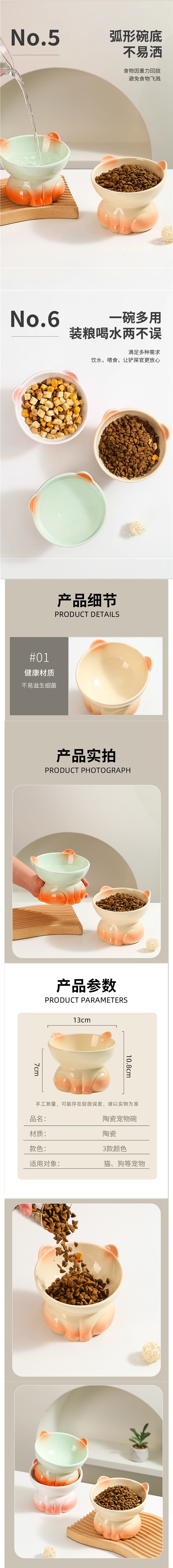 세라믹 고양이 그릇 높은 발 귀여운 고양이 그릇 애완 동물 고양이 음식 분지 목 보호 비스듬한 입 보호 자궁 경부 척추 안티 블랙 턱 물 그릇스토어 가기