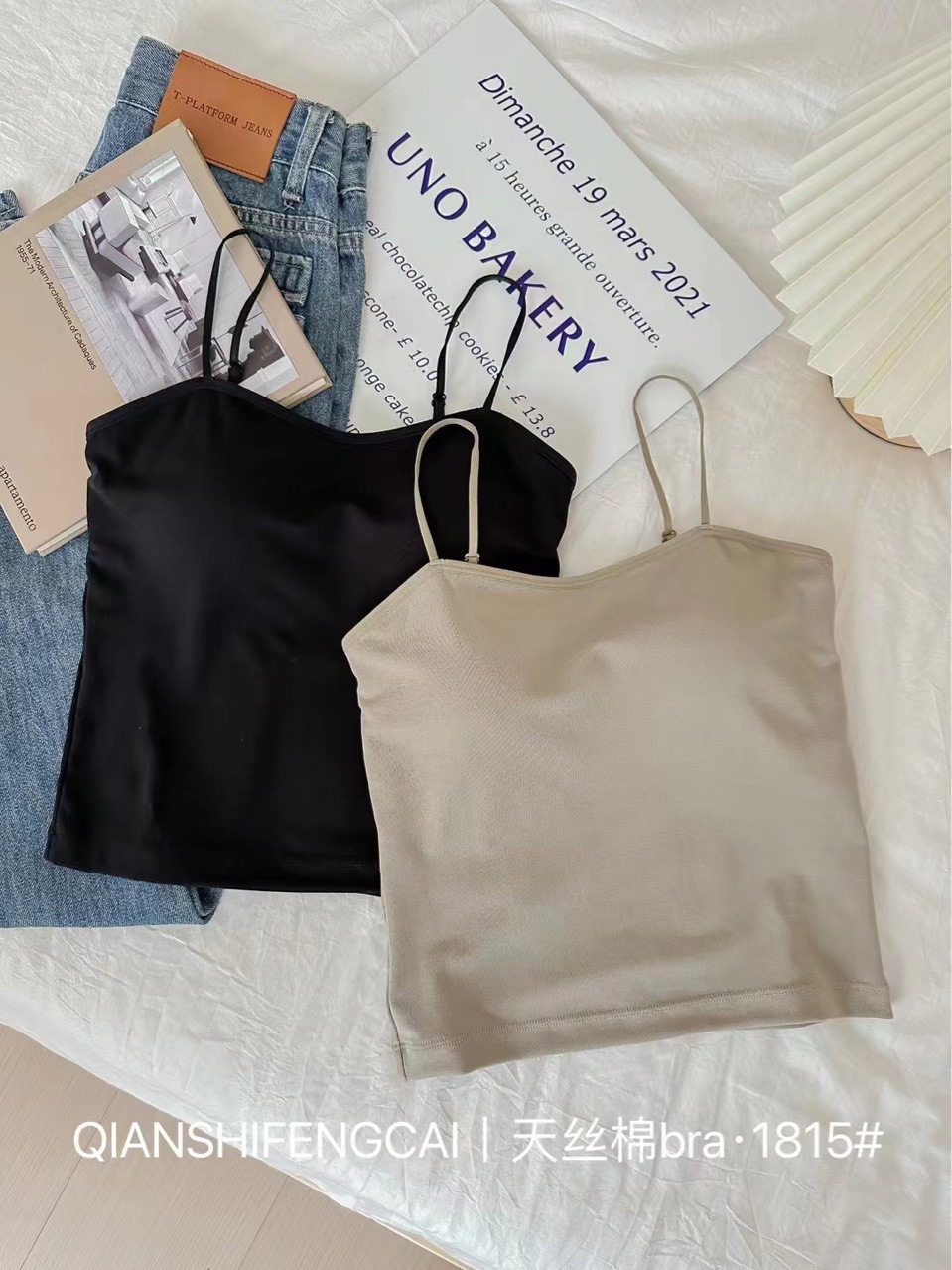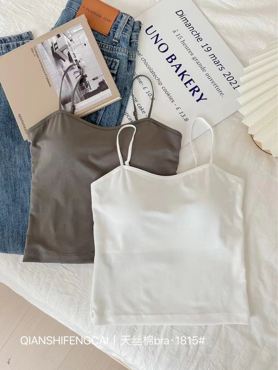 슬림 숄더 튜브탑, 아름다운 등끈, 가슴 패드, 고정형 원컵 조끼, 활용도 높은 아우터 탑, 피부 친화적인 통기성 베이스