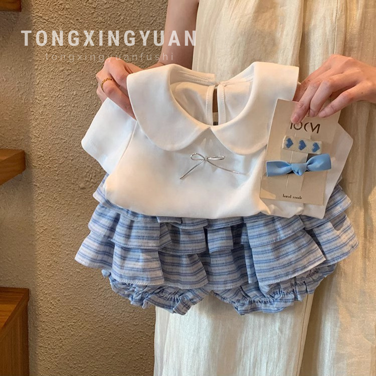 Tongxingyuan 소녀의 귀여운 달콤한 두 조각 2025 새로운 여름 티셔츠 아기 소녀 반팔 반바지스토어 가기