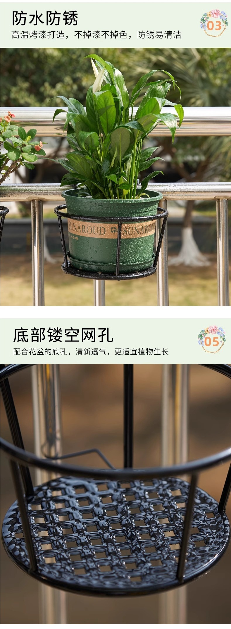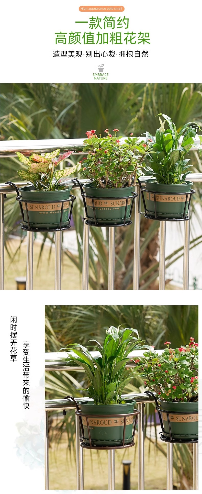 설치 무료 유럽 스타일의 연철 난간 꽃 랙 가드 레일 화분 매달려있는 발코니 교수형 바구니 녹색 막대 다발 꽃 냄비 랙
