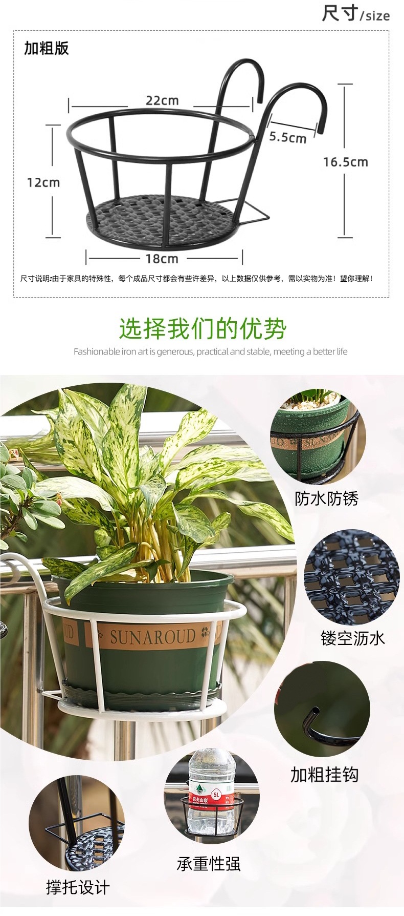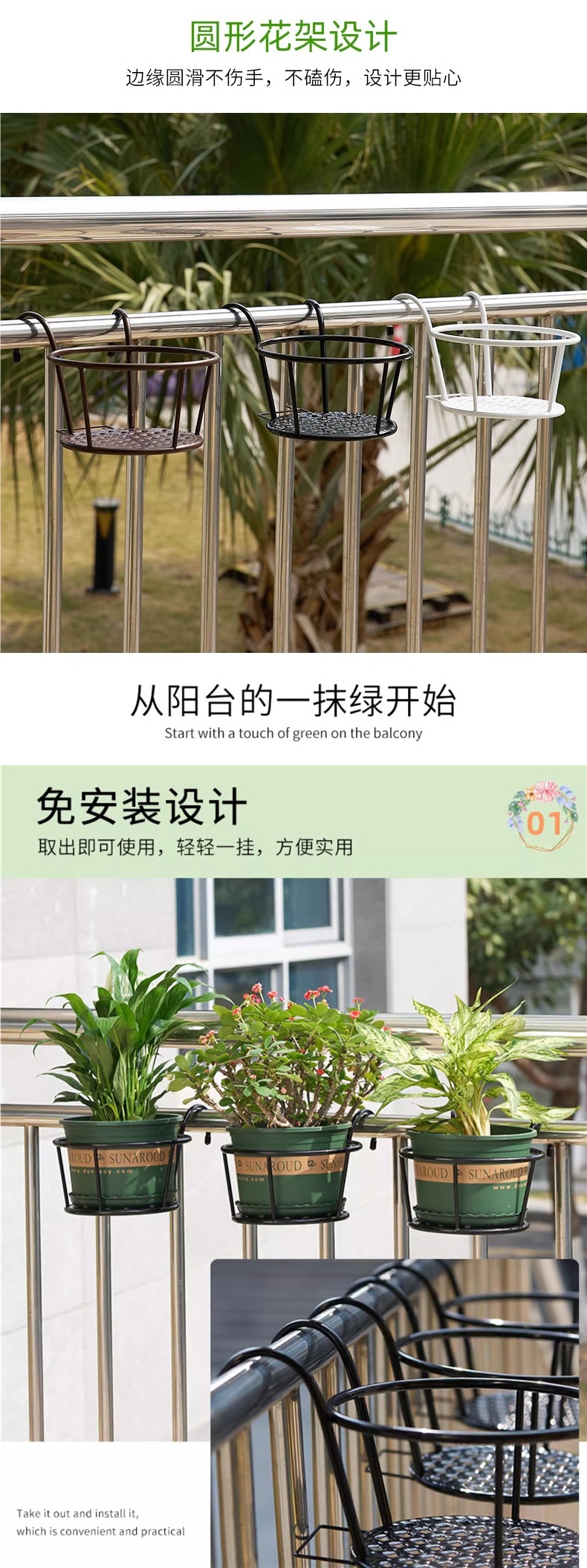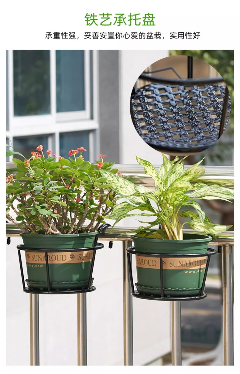 설치 무료 유럽 스타일의 연철 난간 꽃 랙 가드 레일 화분 매달려있는 발코니 교수형 바구니 녹색 막대 다발 꽃 냄비 랙스토어 가기
