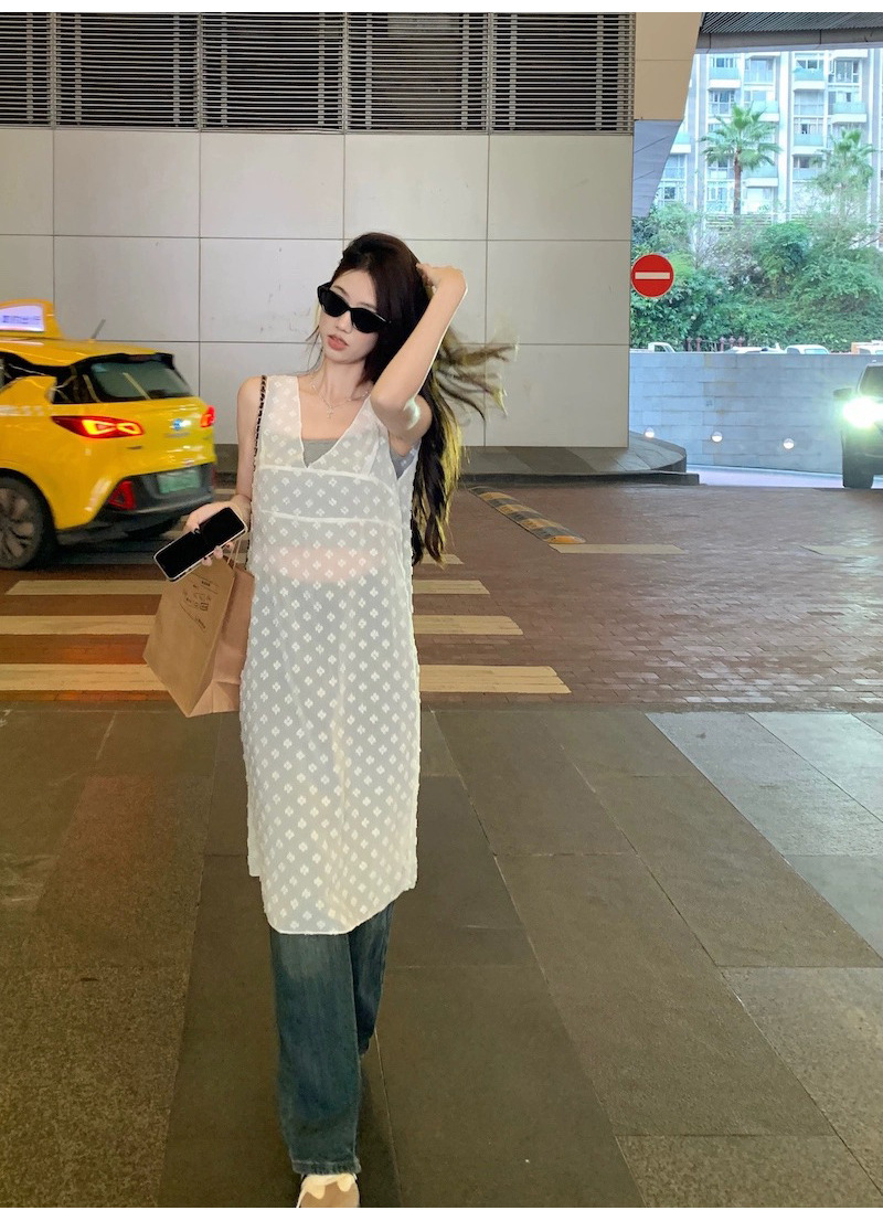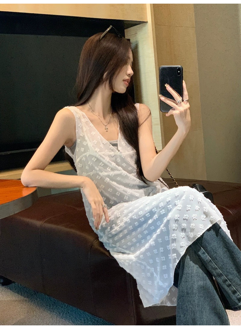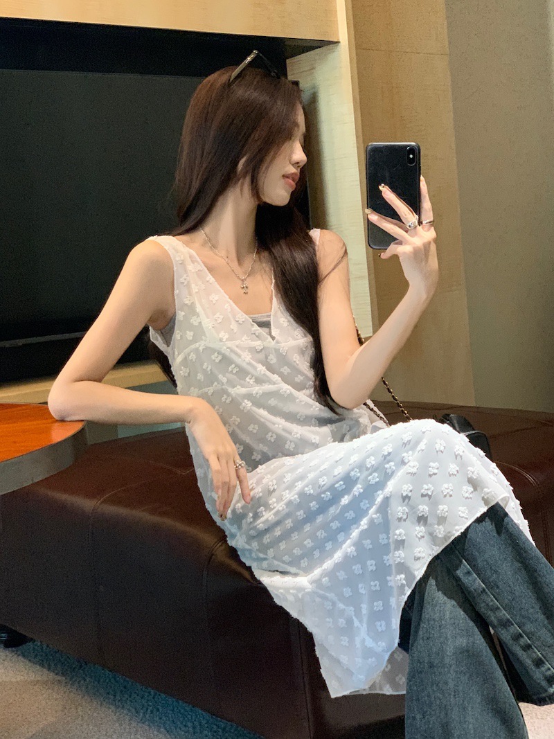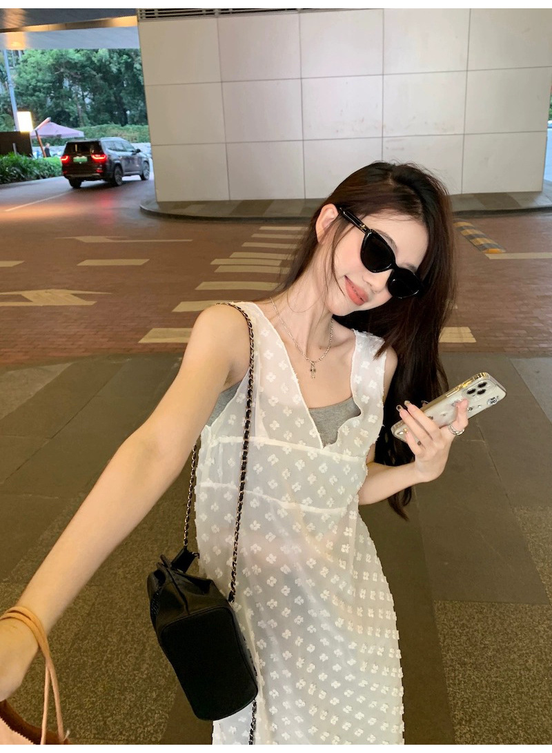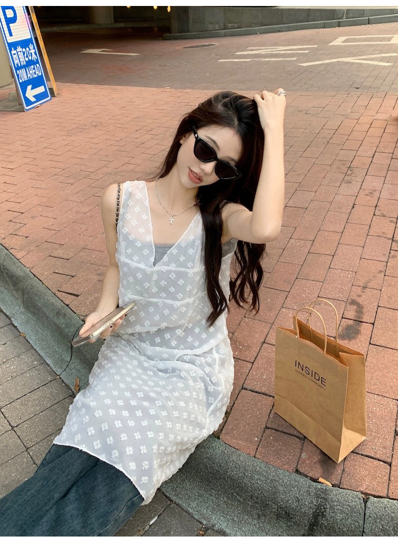 디자인 센스 틈새 슈퍼 요정 화이트 원근감 쌓인 레이스 긴 원피스 해변 휴가 착용 사진 원피스스토어 가기