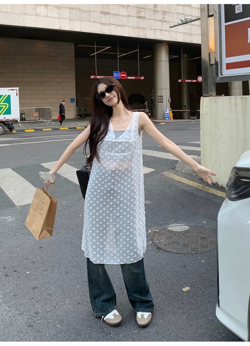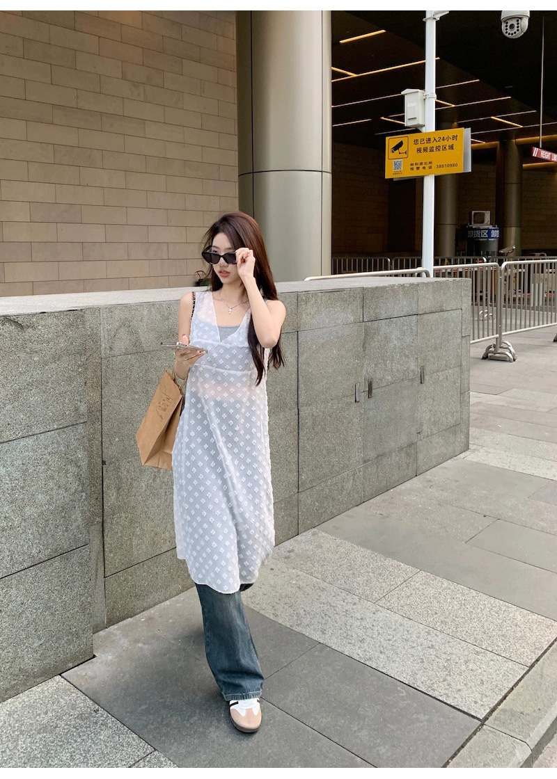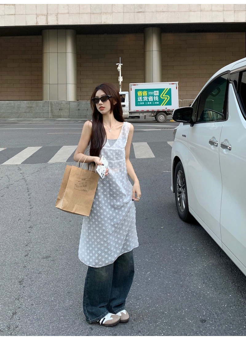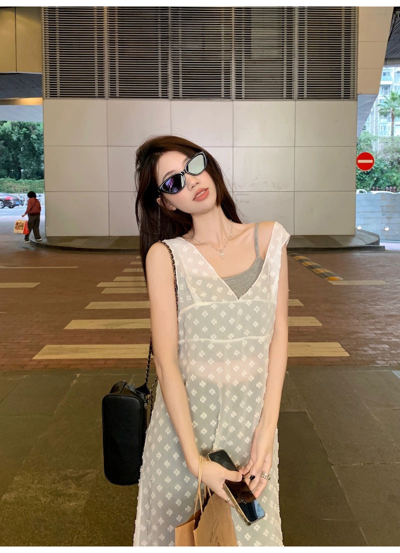 디자인 센스 틈새 슈퍼 요정 화이트 원근감 쌓인 레이스 긴 원피스 해변 휴가 착용 사진 원피스스토어 가기
