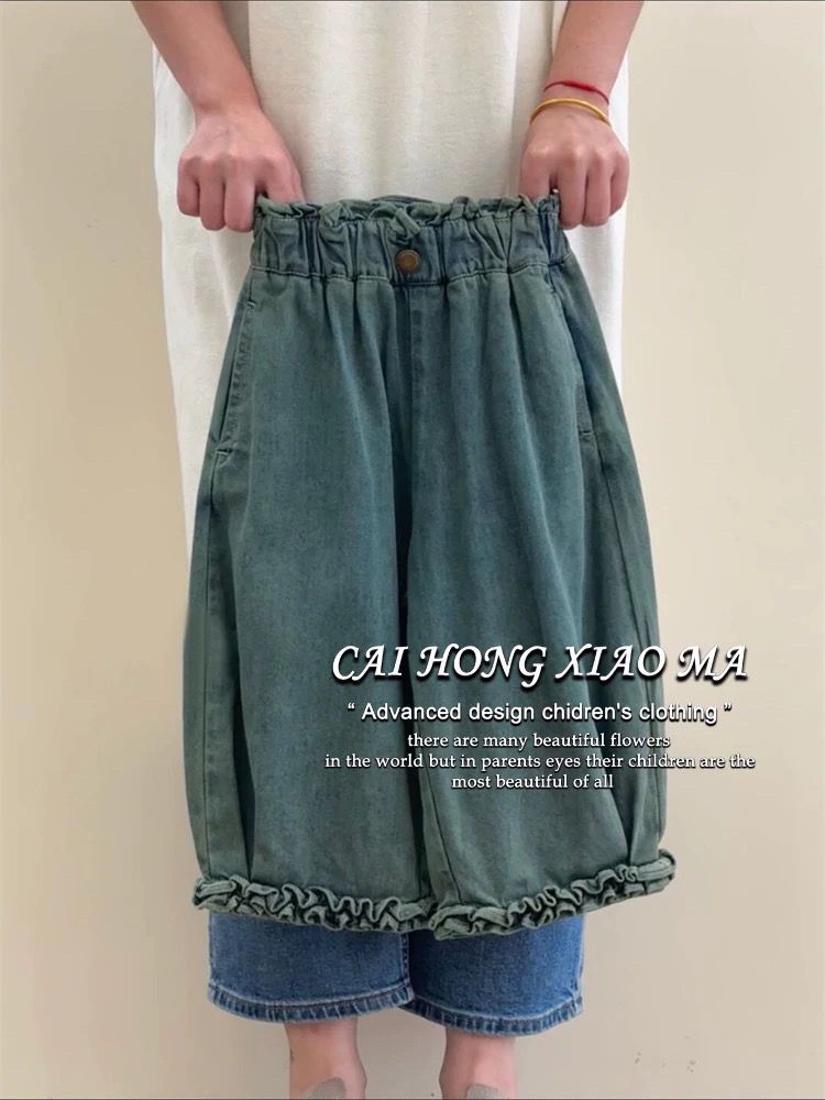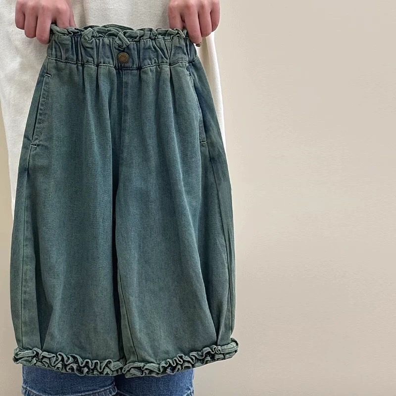 소녀 청바지 한국 스타일 봄과 가을 새로운 어린이 가을 캐주얼 느슨한 아기 서양 스타일 올 매치 블루머스 바지스토어 가기