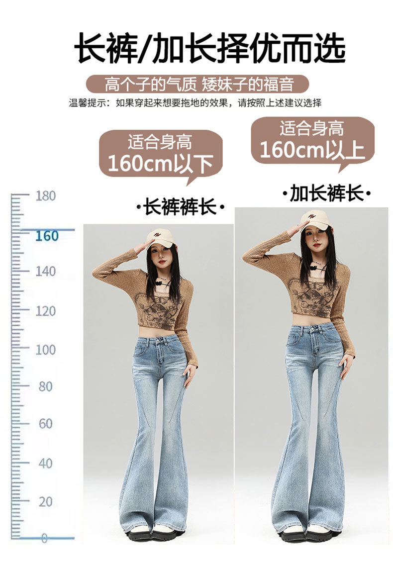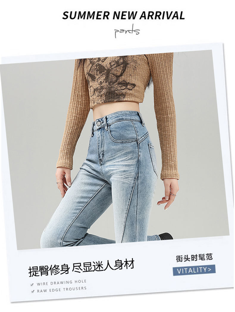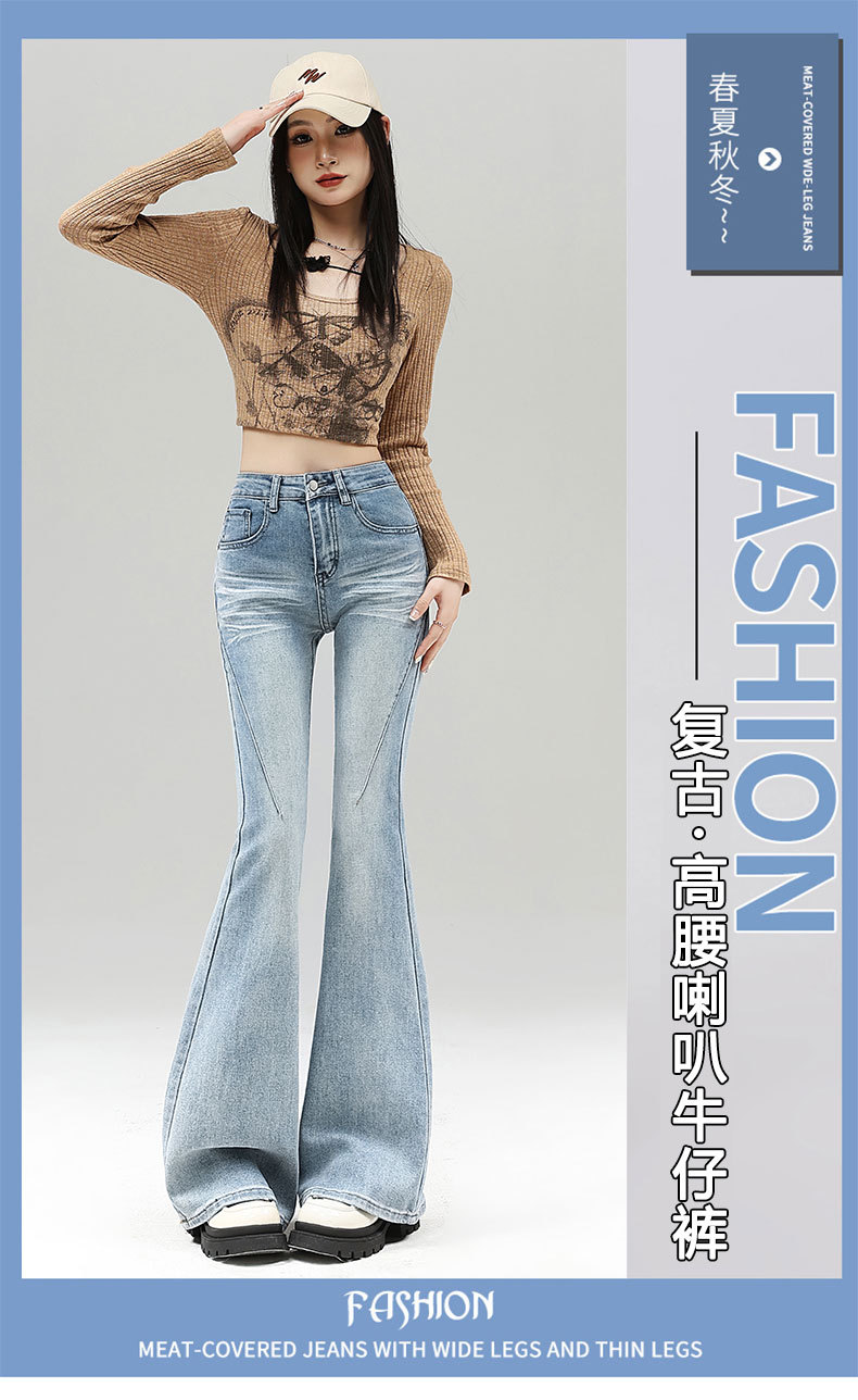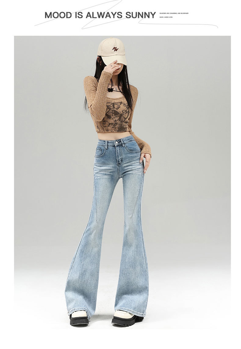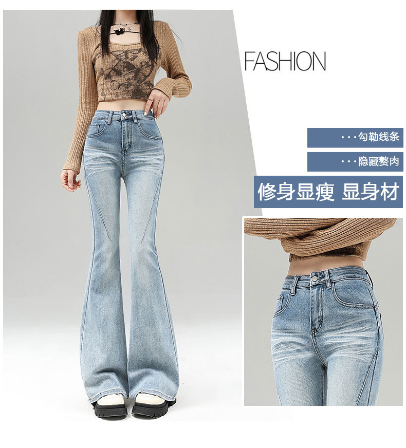 라이트 블루 마이크로 라 청바지 여성의 이른 봄 2025 새로운 높은 허리 슬림 주름 디자인 경적 바지스토어 가기