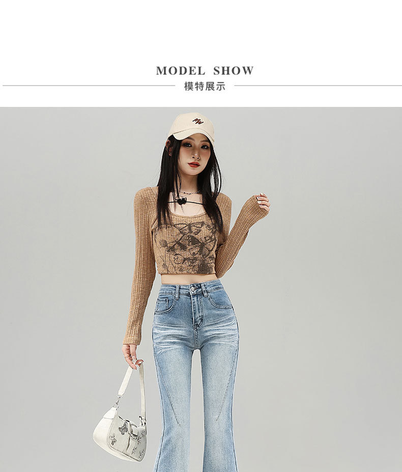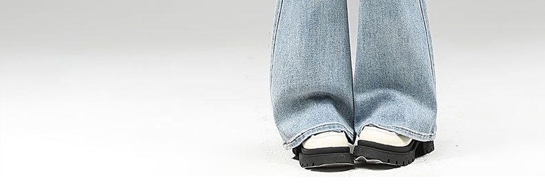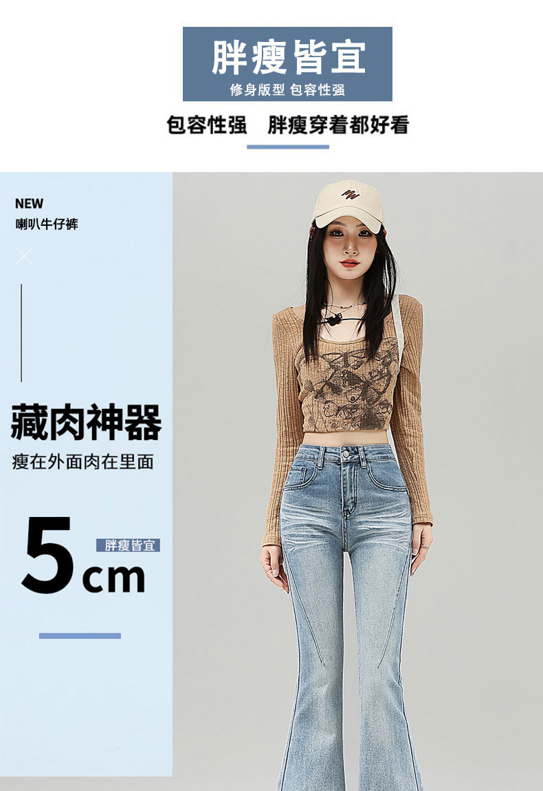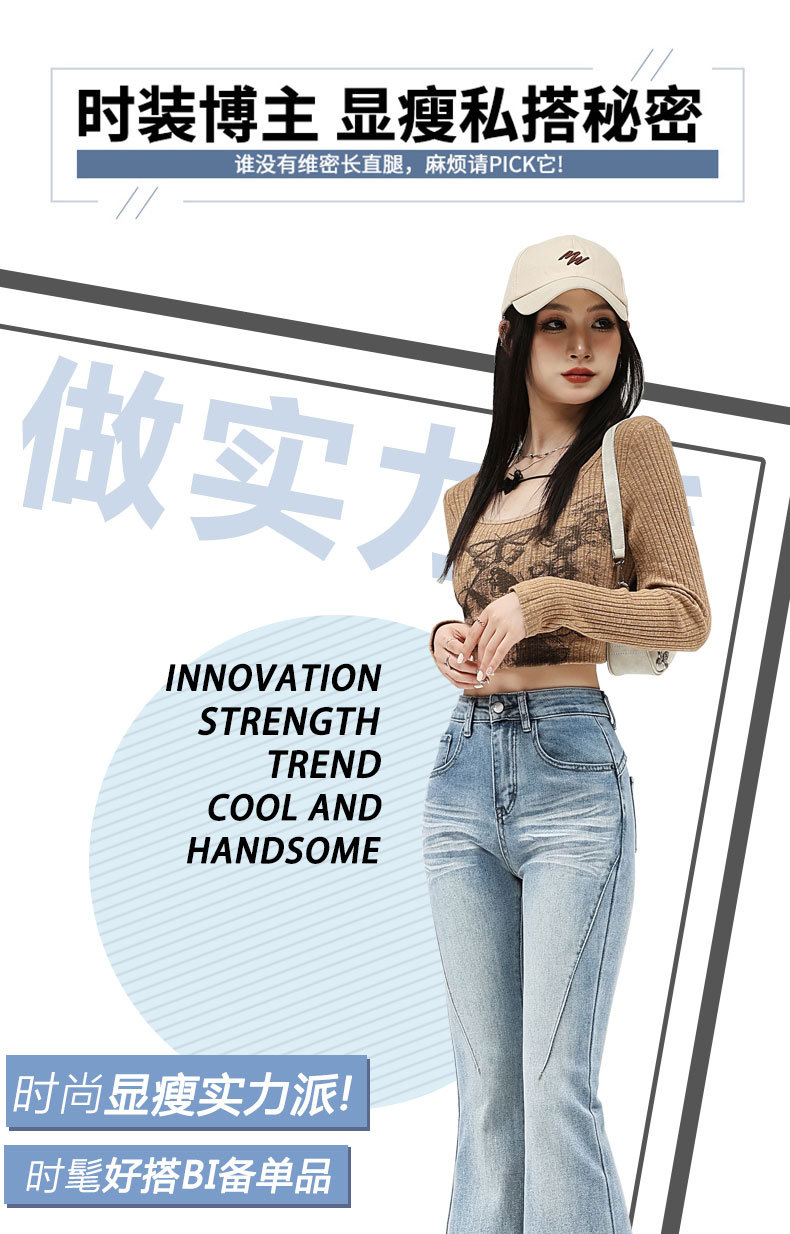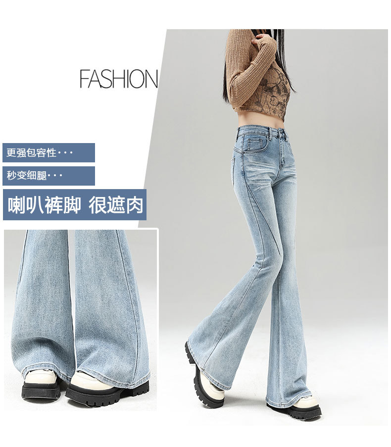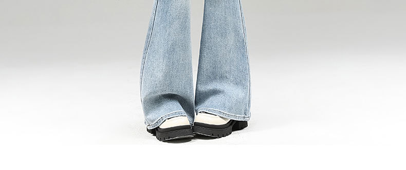 라이트 블루 마이크로 라 청바지 여성의 이른 봄 2025 새로운 높은 허리 슬림 주름 디자인 경적 바지스토어 가기