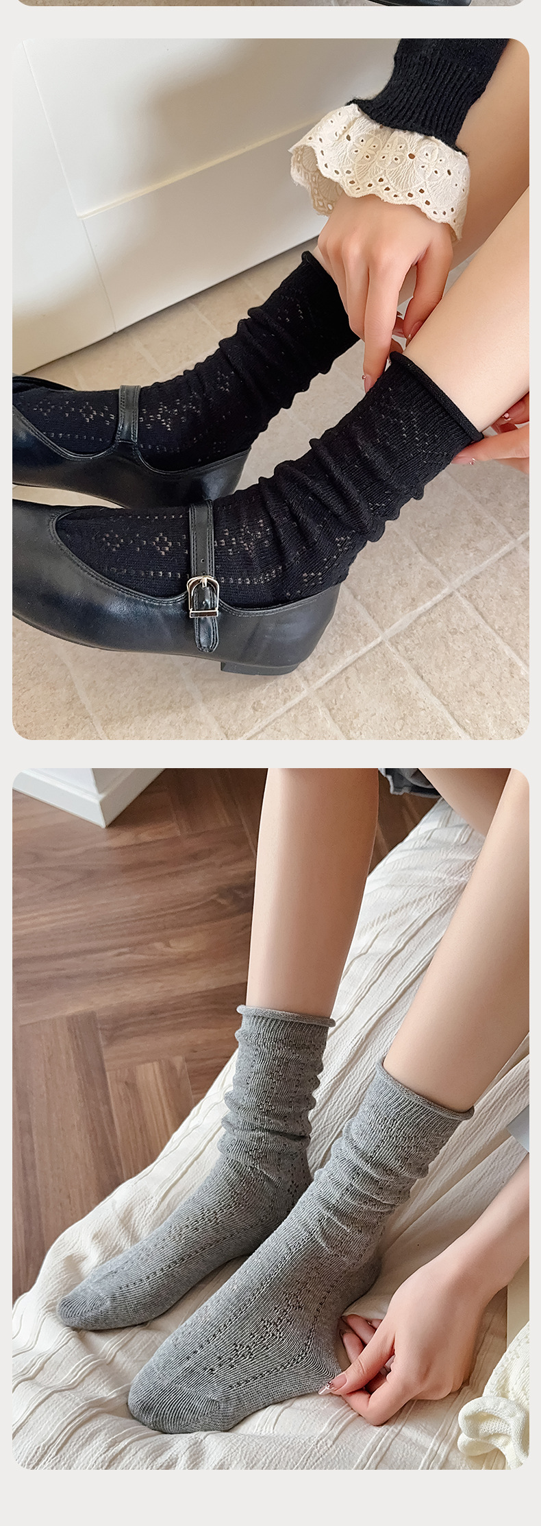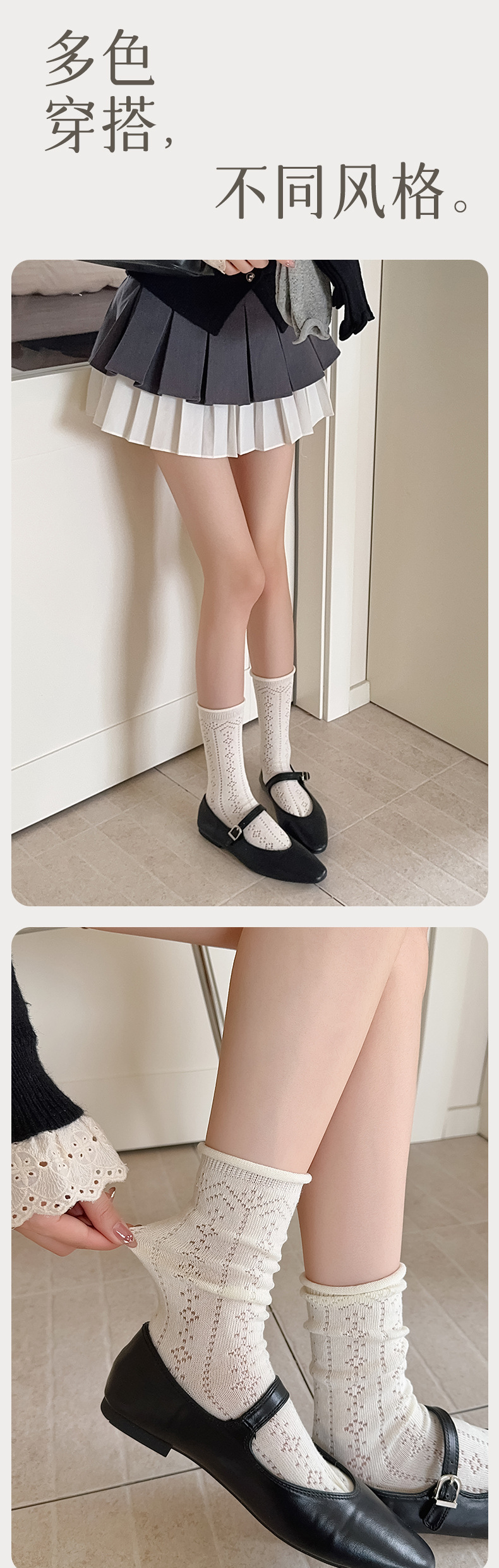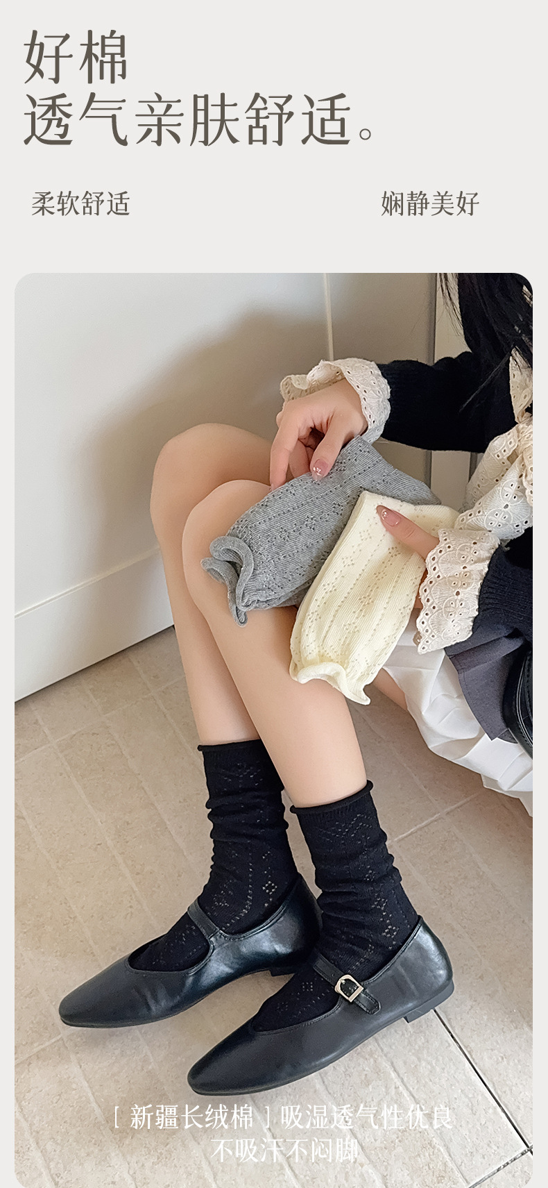 일본식 솔리드 컬러 봄과 여름 얇은 할로우 아웃 코튼 양말 땀 흡수성 통기성 패션 올 매치 여성용 메쉬 필 스타킹