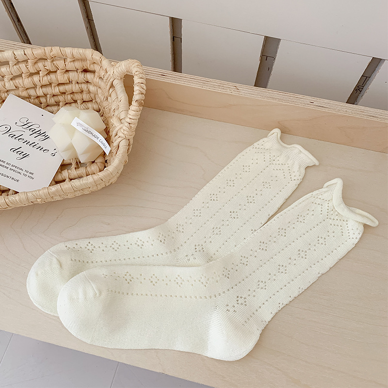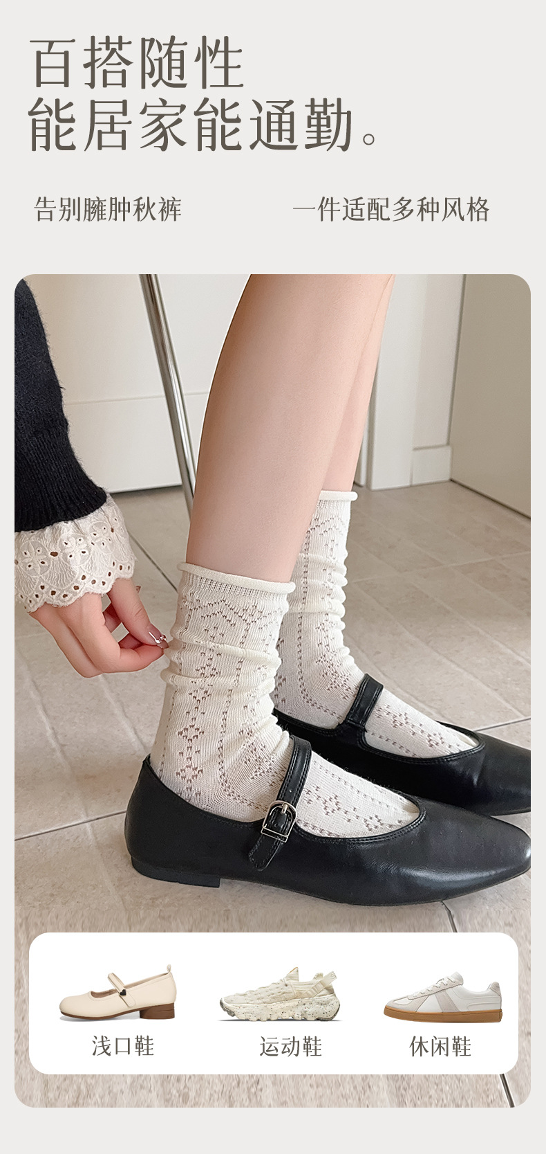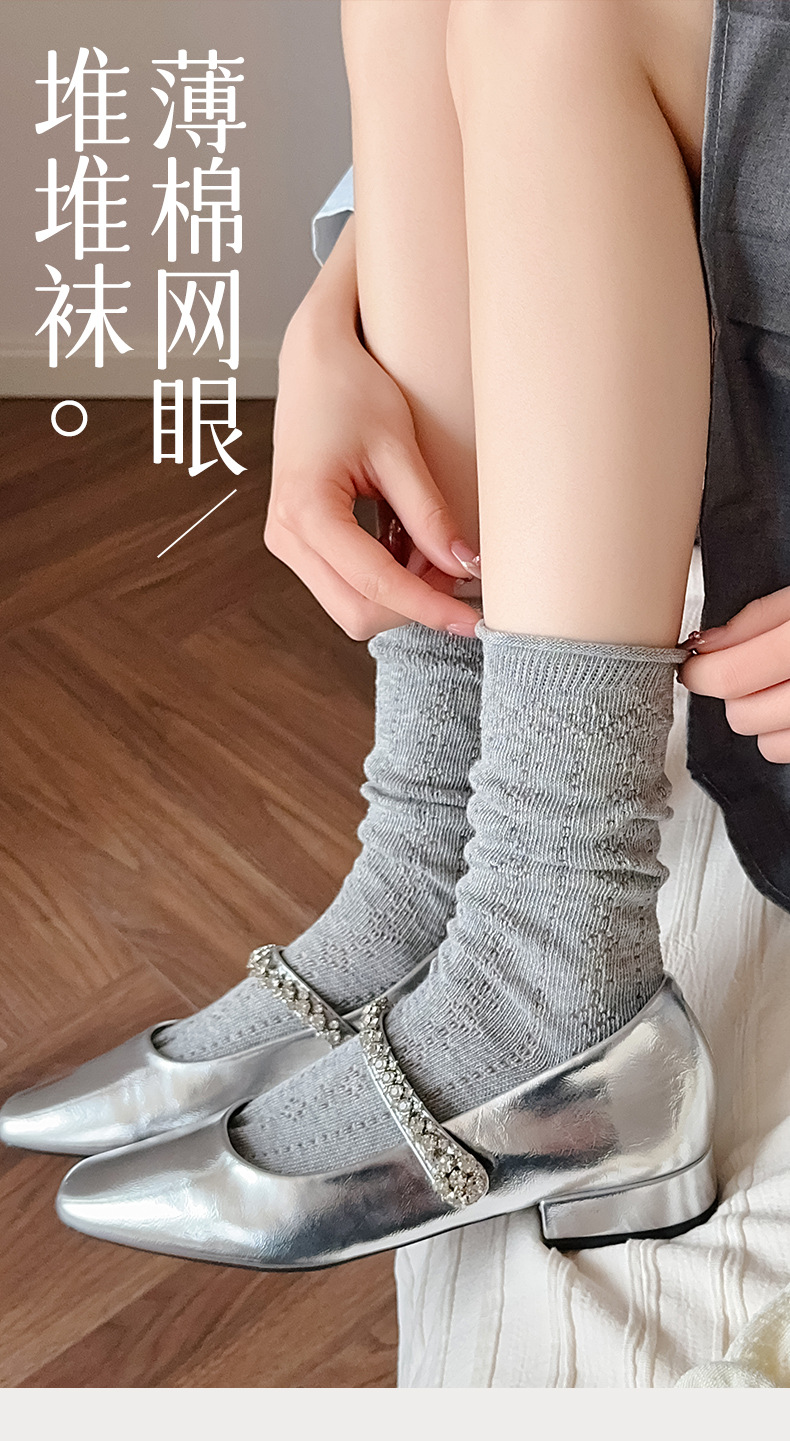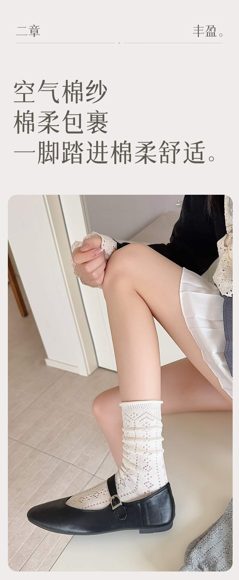 일본식 솔리드 컬러 봄과 여름 얇은 할로우 아웃 코튼 양말 땀 흡수성 통기성 패션 올 매치 여성용 메쉬 필 스타킹