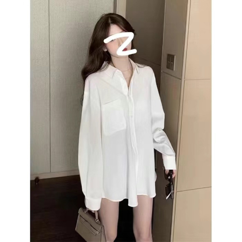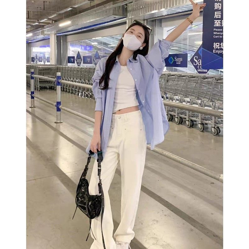 [7365 인민 컬렉션] 블루 셔츠 여성 긴팔 2024 여름 새로운 한국 스타일 탑 세련된 느슨한 슈퍼 굿