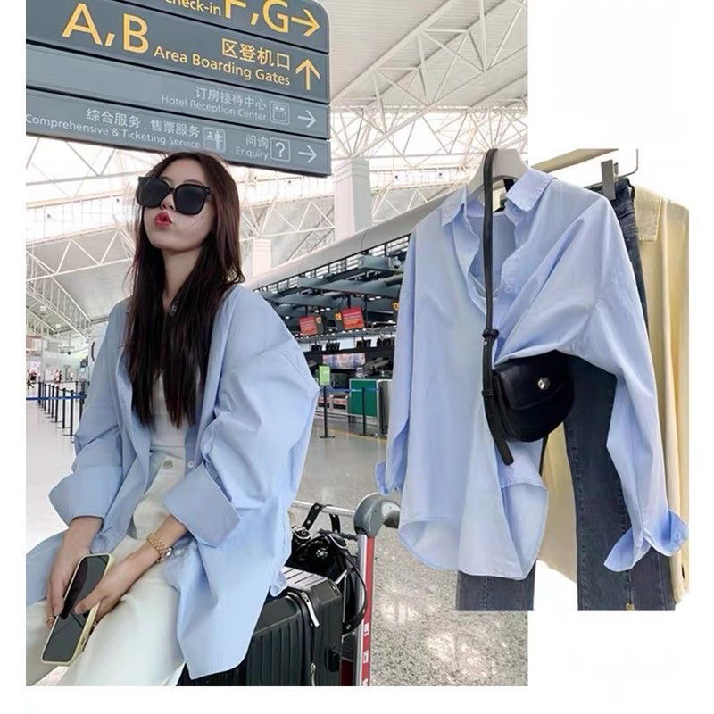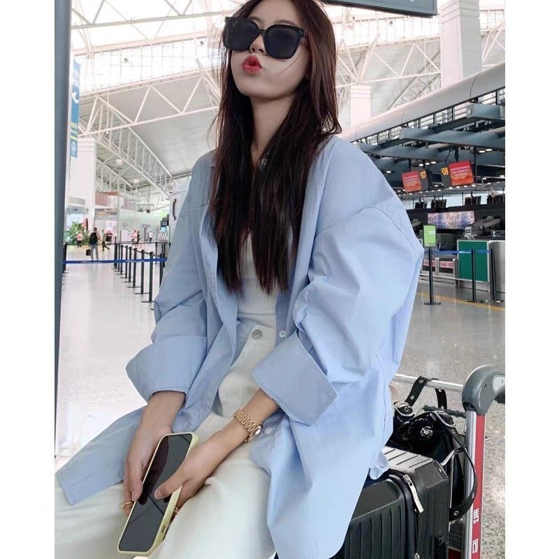 [7365 인민 컬렉션] 블루 셔츠 여성 긴팔 2024 여름 새로운 한국 스타일 탑 세련된 느슨한 슈퍼 굿스토어 가기