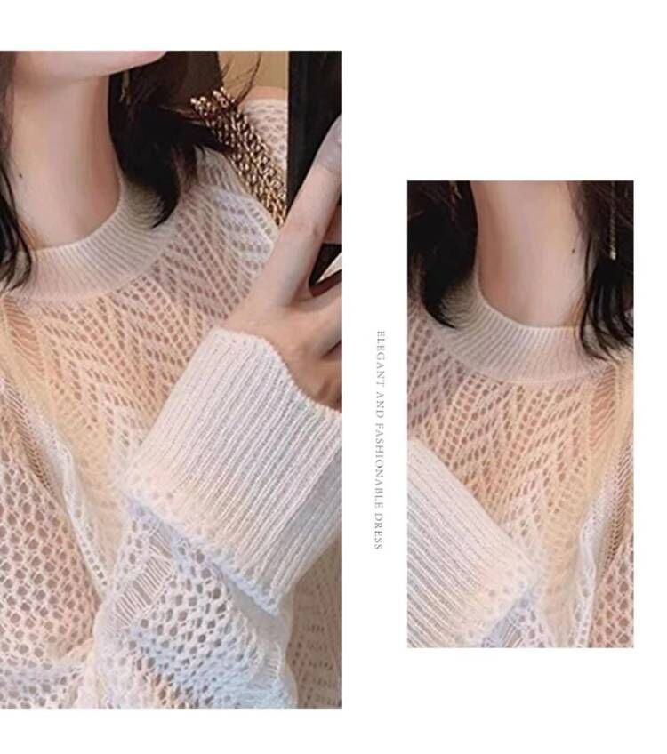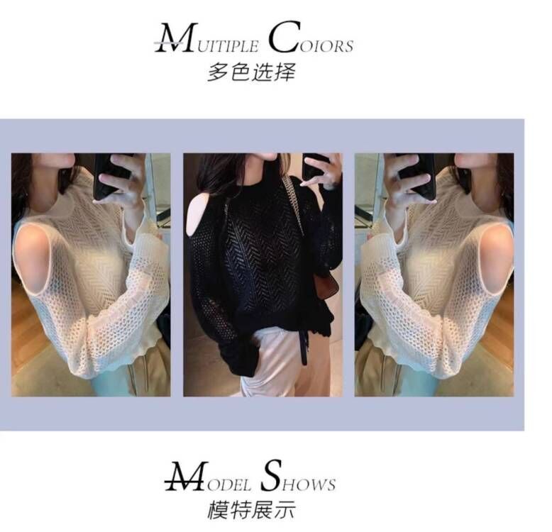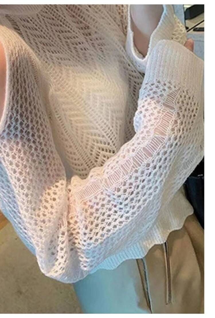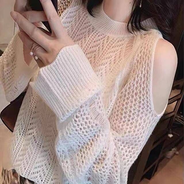 할로우 아웃 오브 숄더 탑 젠틀 라지 스타일 아이스 실크 얇은 베이스 니트 스웨터 느슨한 외부 착용 선스크린 블라우스 여름 여성스토어 가기