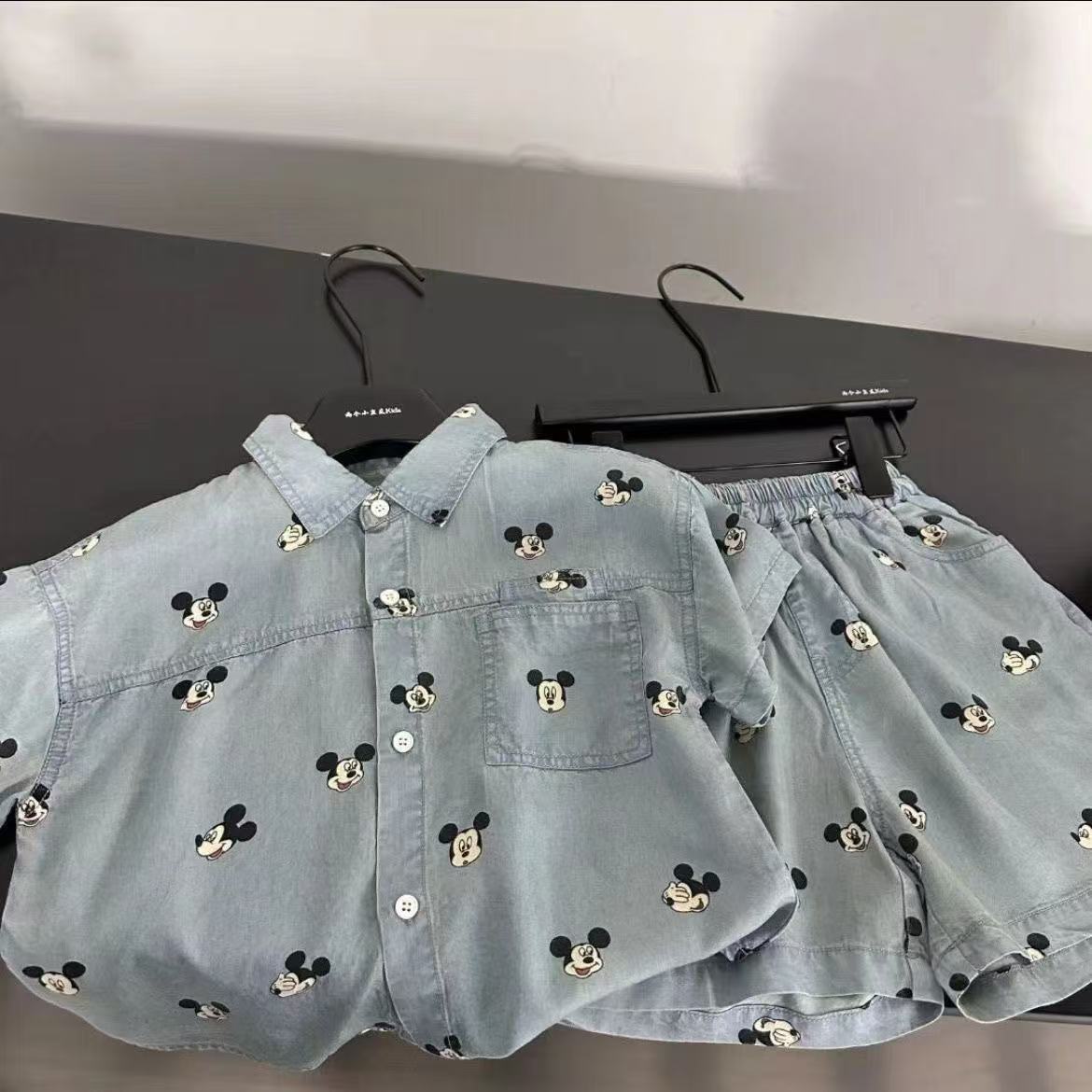 어린이 여름 패션 반팔 세트 얇은 데님 셔츠 캐주얼 한국식 중소 어린이 소년 데님 세트 트렌디스토어 가기
