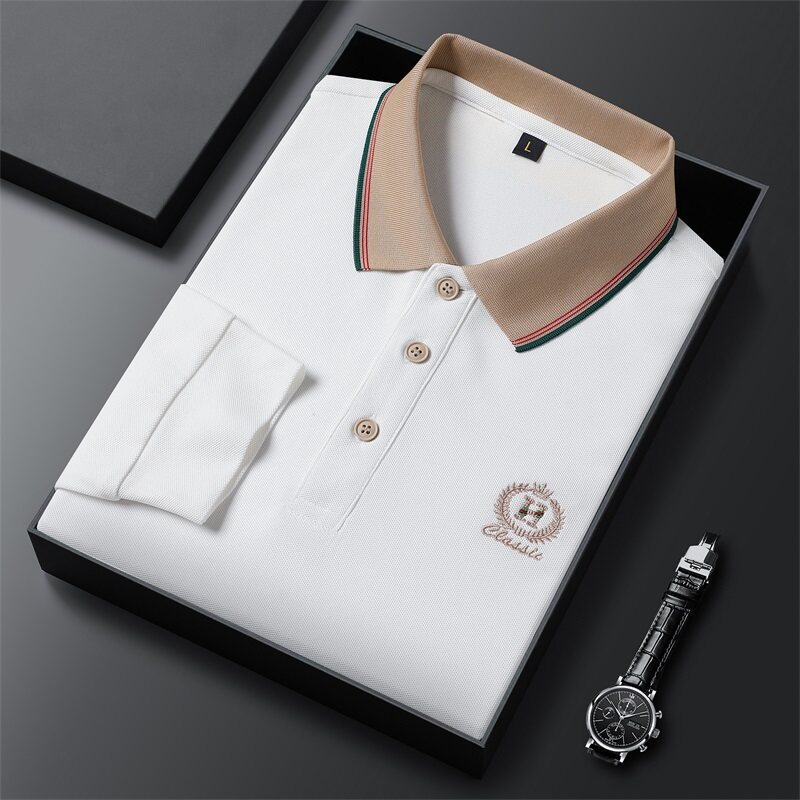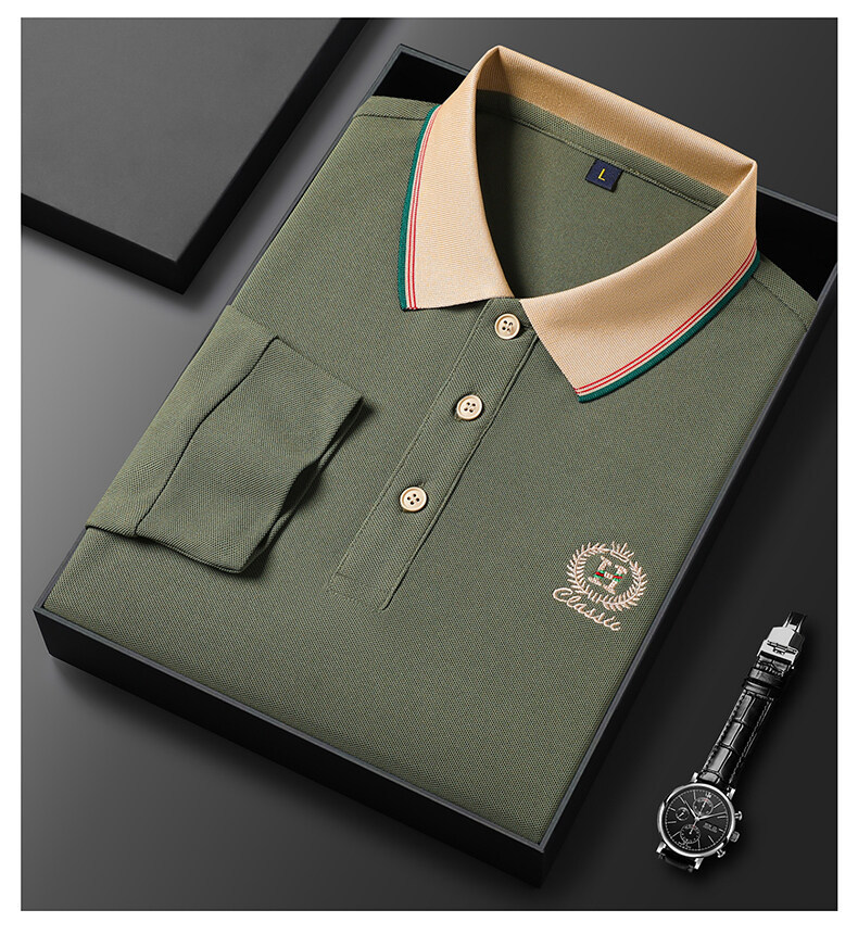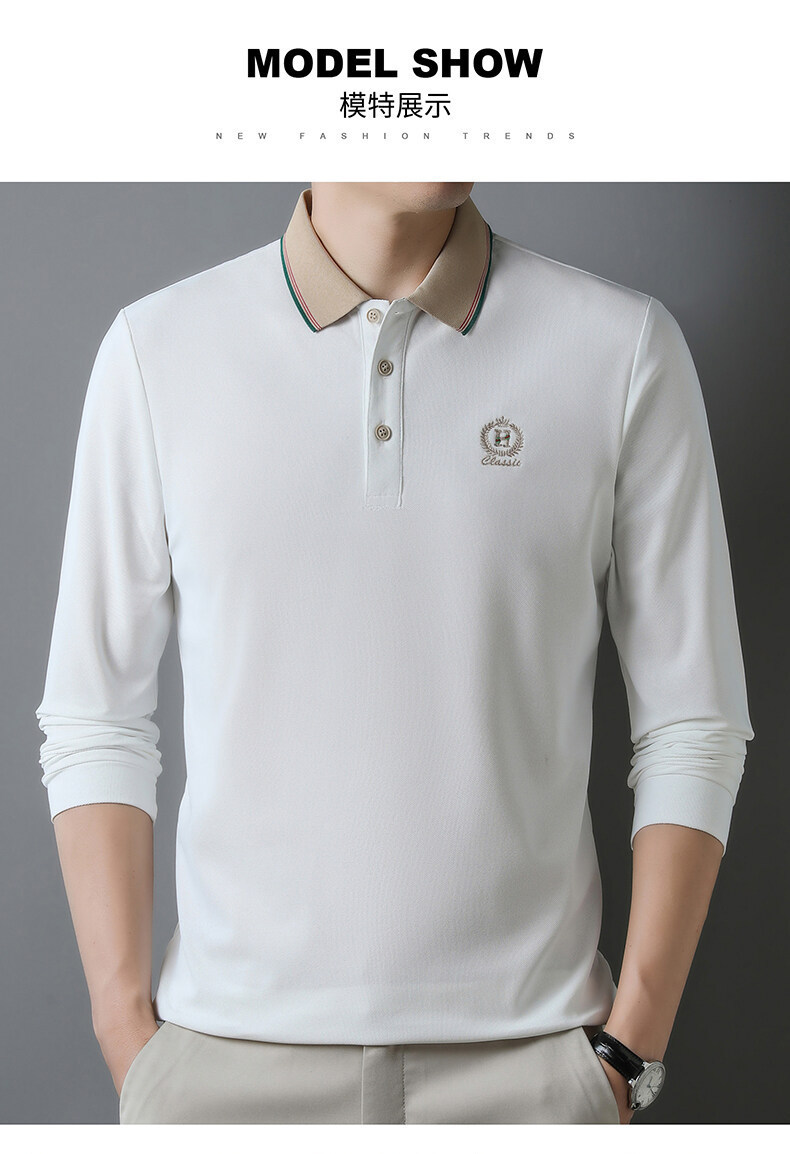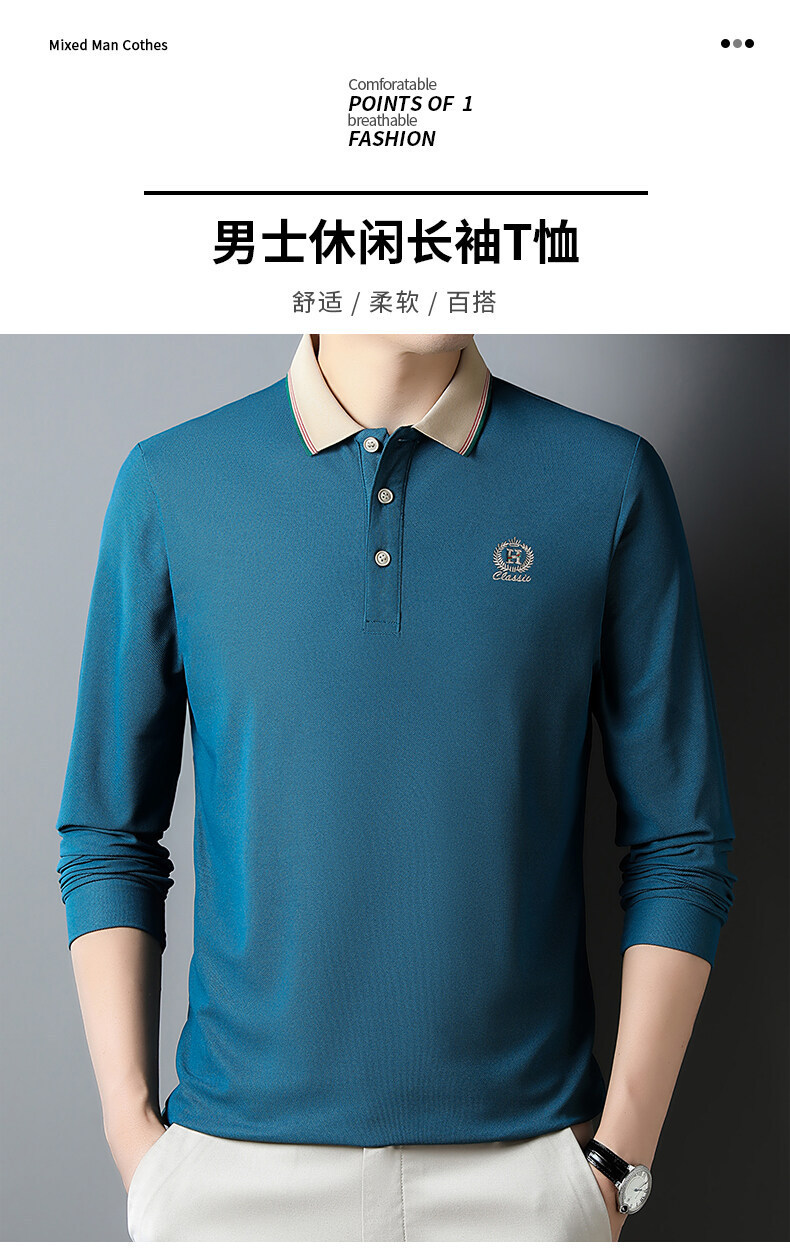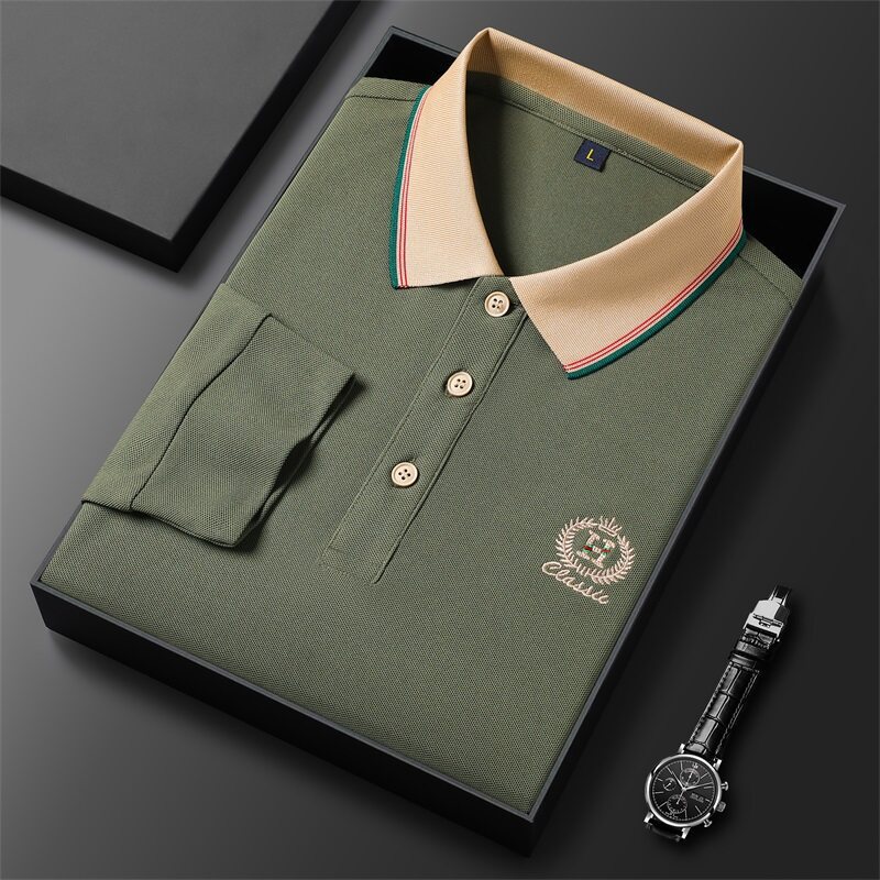 2025 편안한 봄과 가을 새 긴팔 티셔츠 랩 폴로 셔츠 중년 아빠 남자 긴팔 기본 셔츠 단색스토어 가기