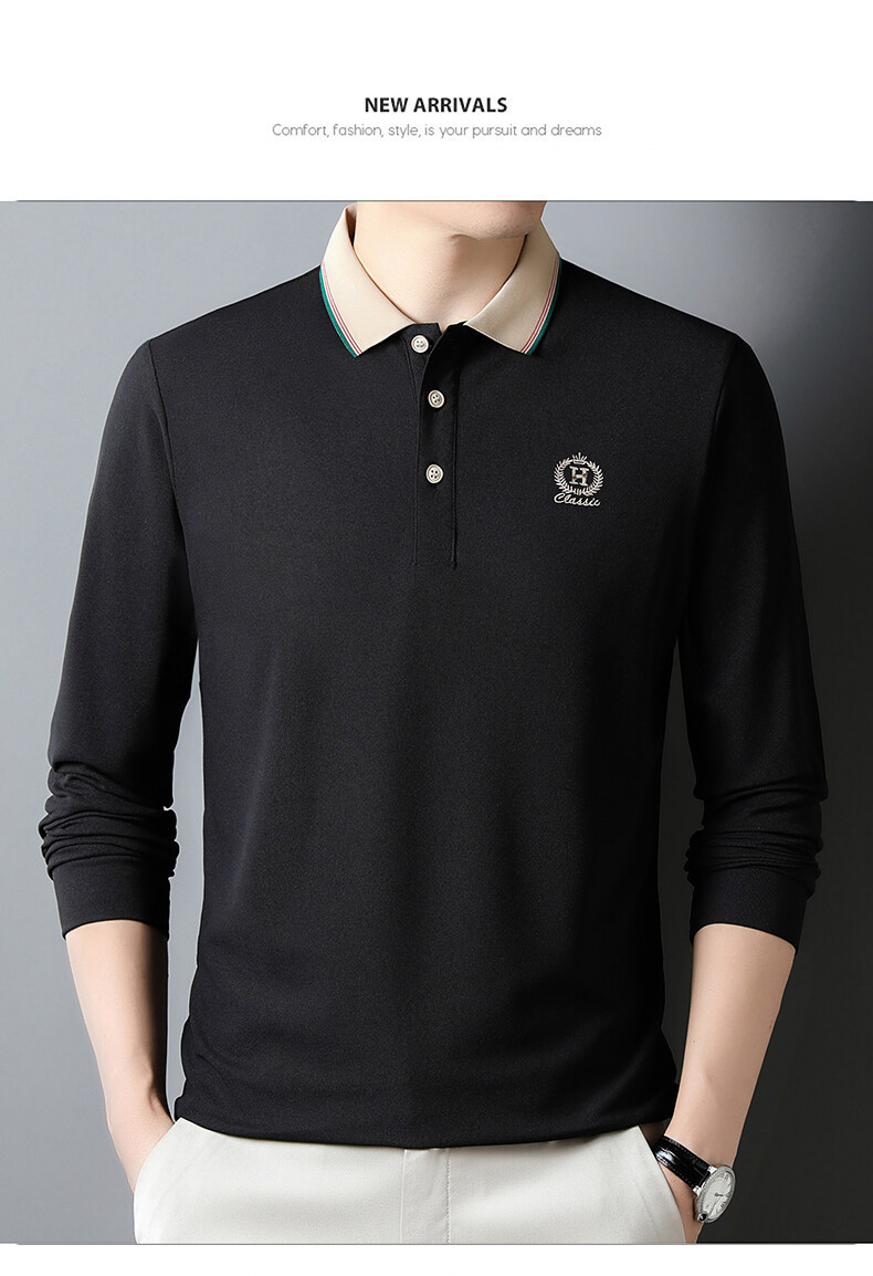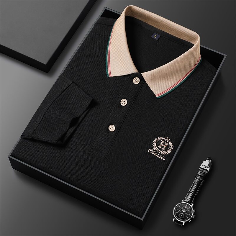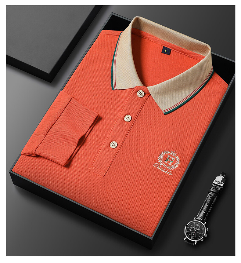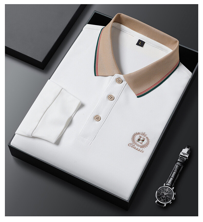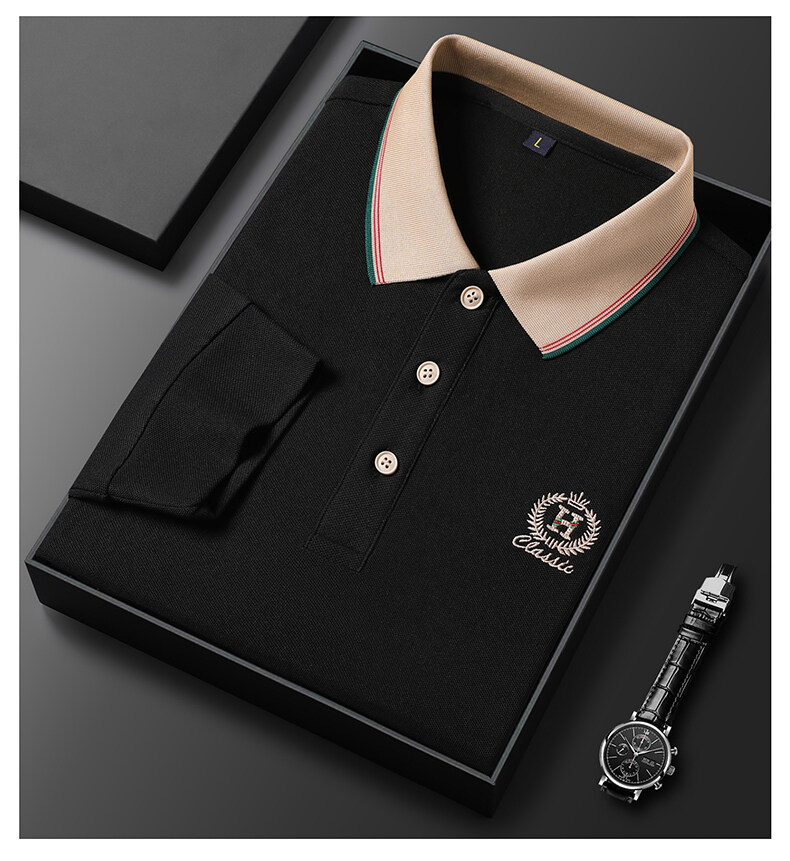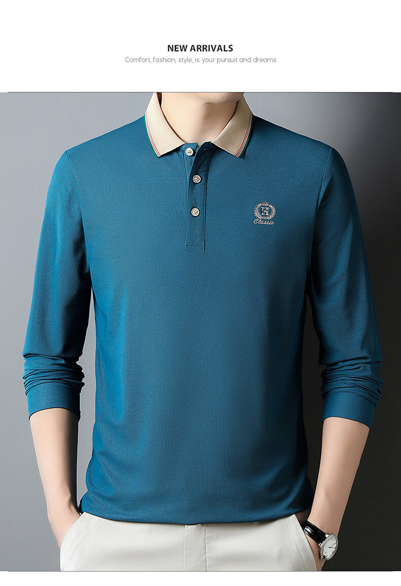 2025 편안한 봄과 가을 새 긴팔 티셔츠 랩 폴로 셔츠 중년 아빠 남자 긴팔 기본 셔츠 단색스토어 가기