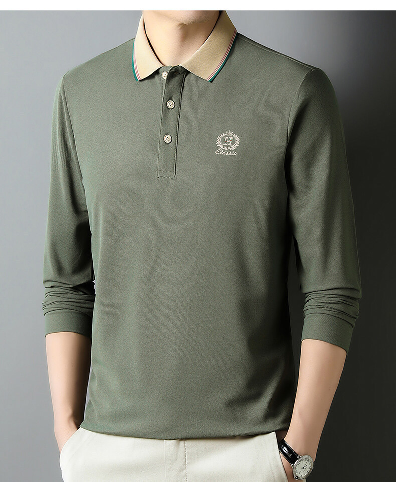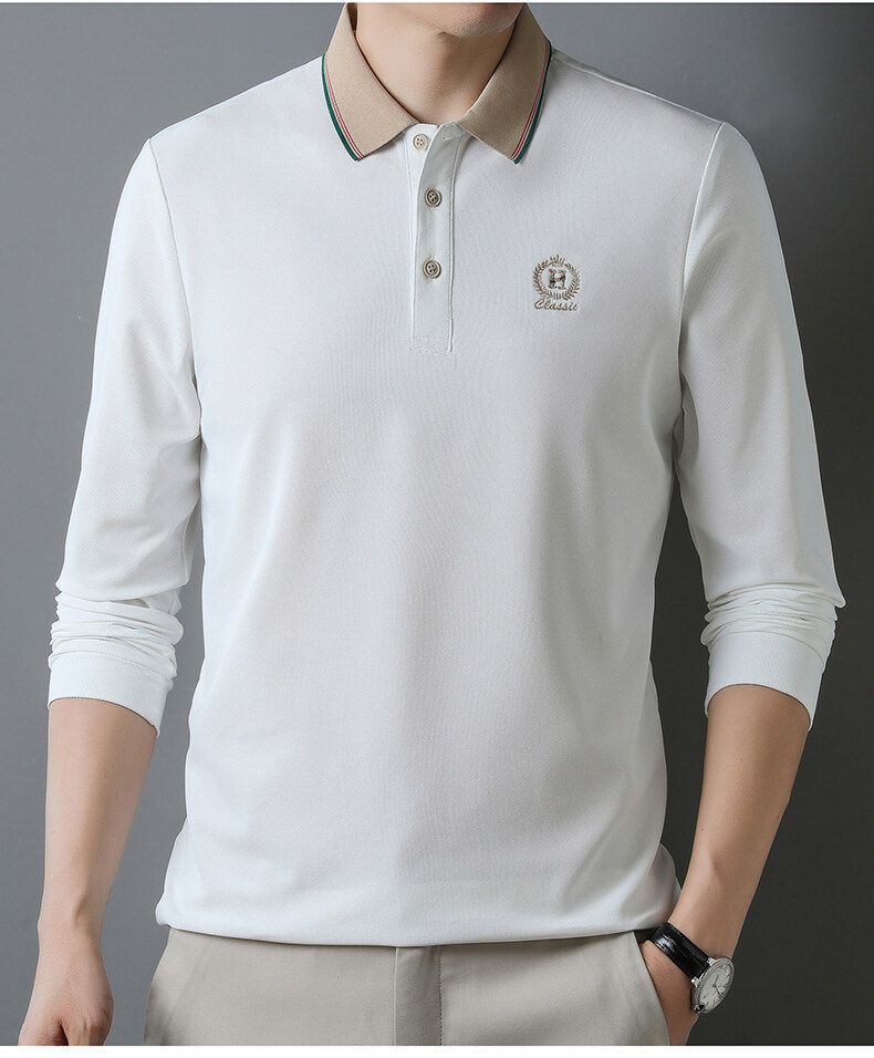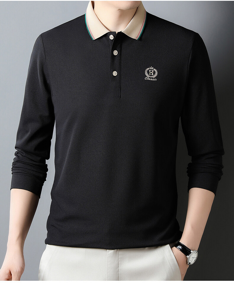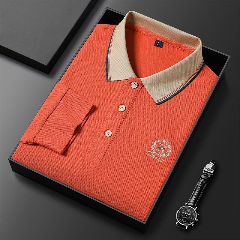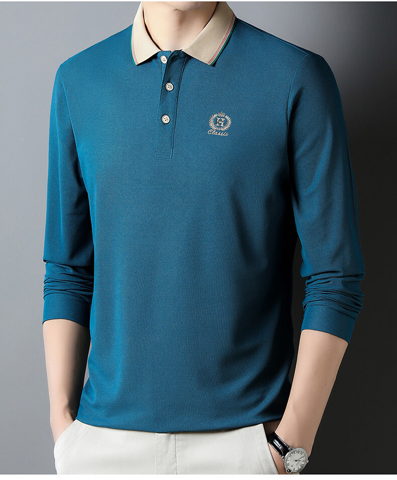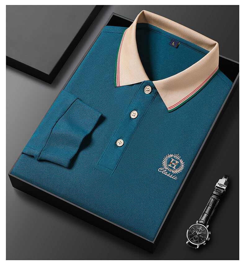 2025 편안한 봄과 가을 새 긴팔 티셔츠 랩 폴로 셔츠 중년 아빠 남자 긴팔 기본 셔츠 단색스토어 가기