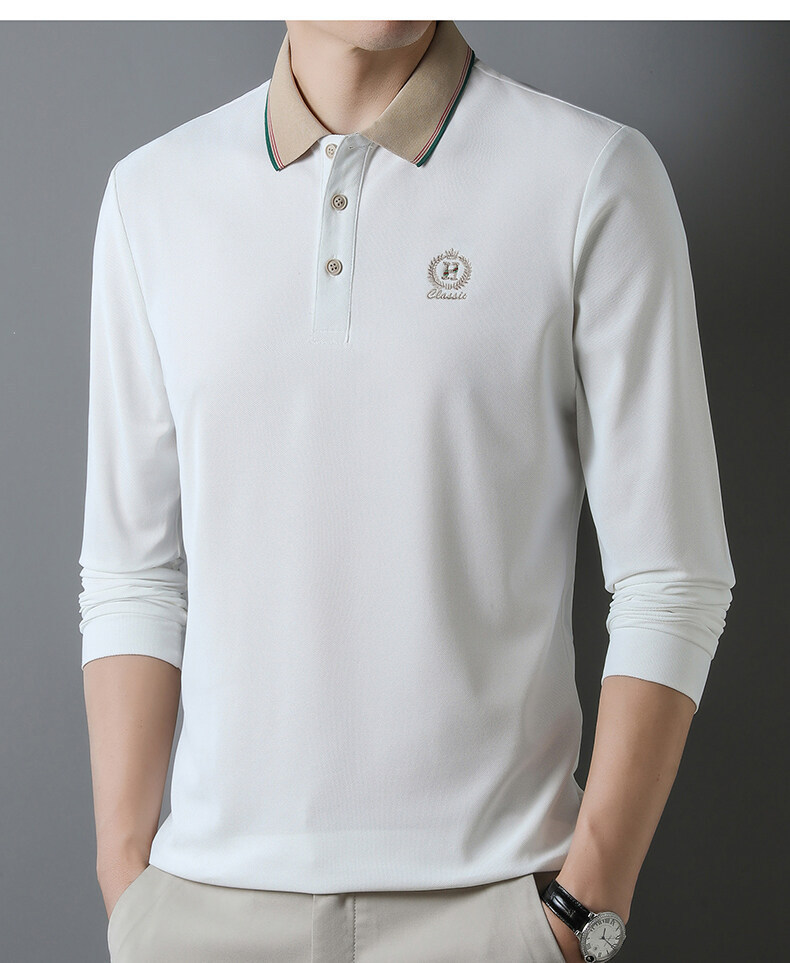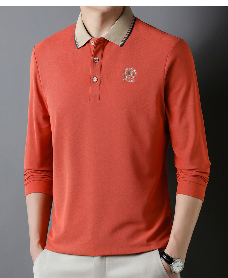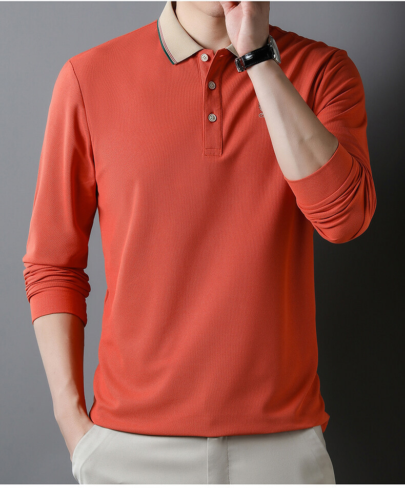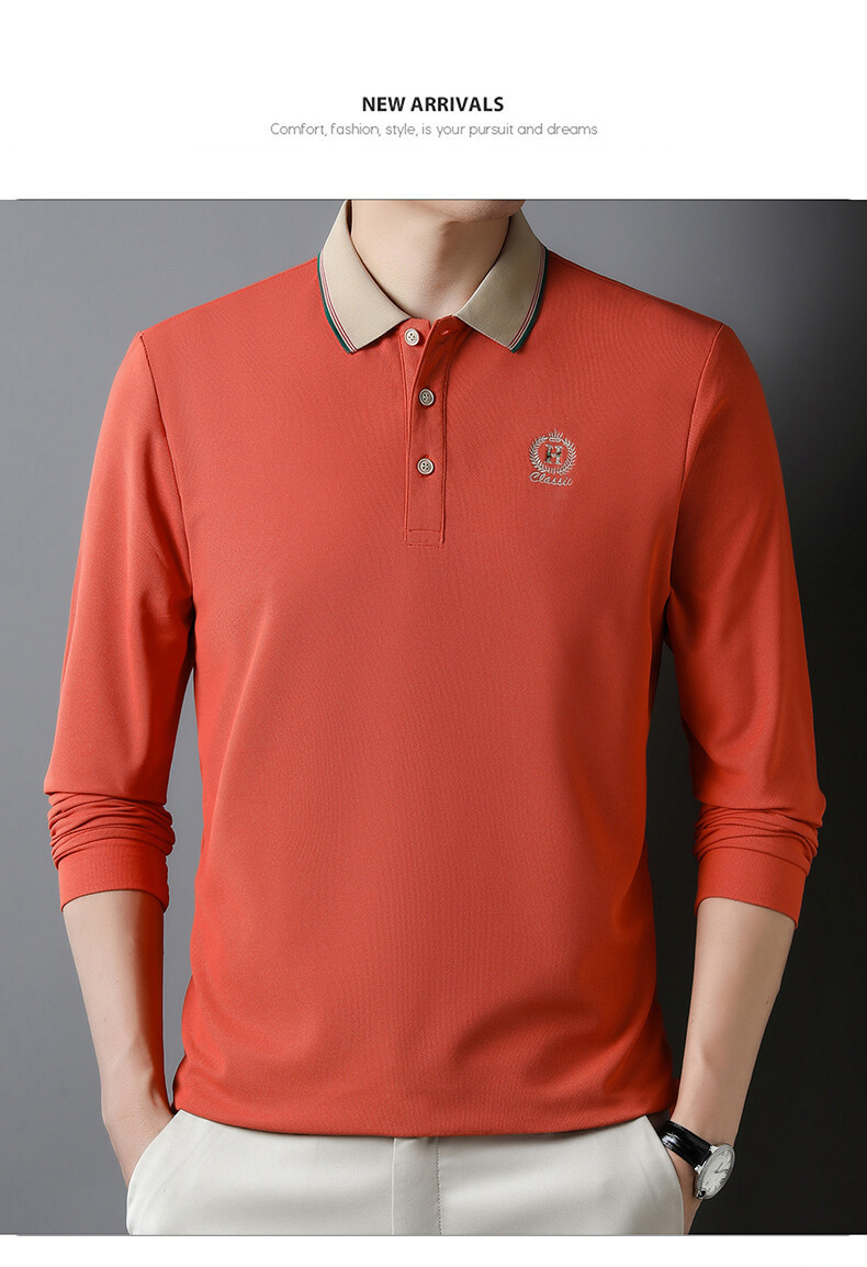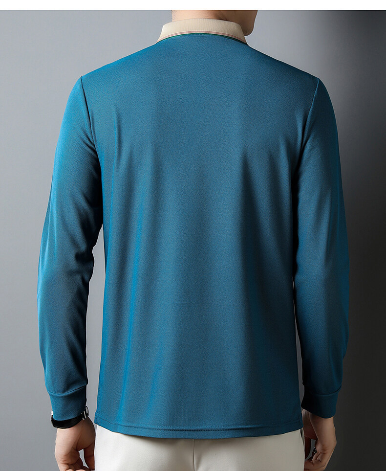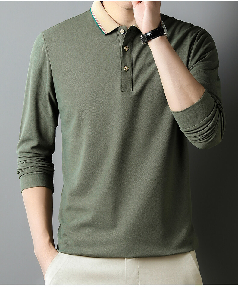 2025 편안한 봄과 가을 새 긴팔 티셔츠 랩 폴로 셔츠 중년 아빠 남자 긴팔 기본 셔츠 단색
