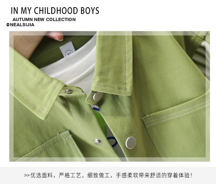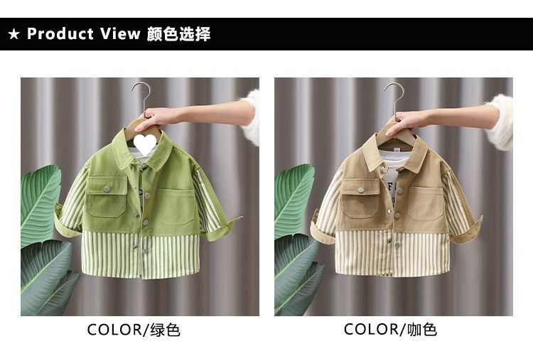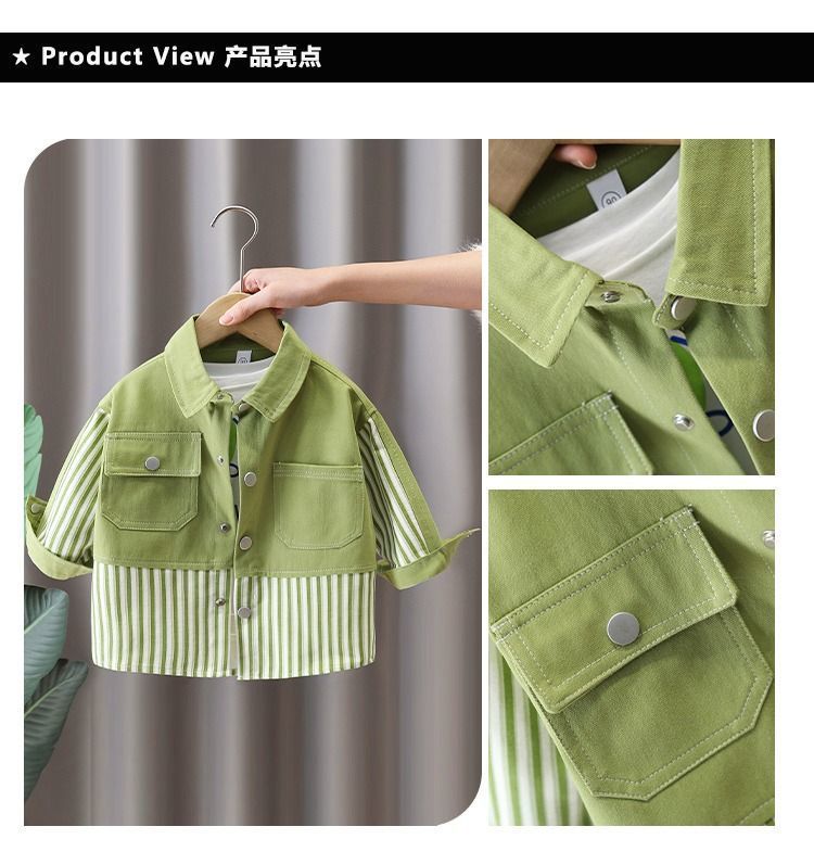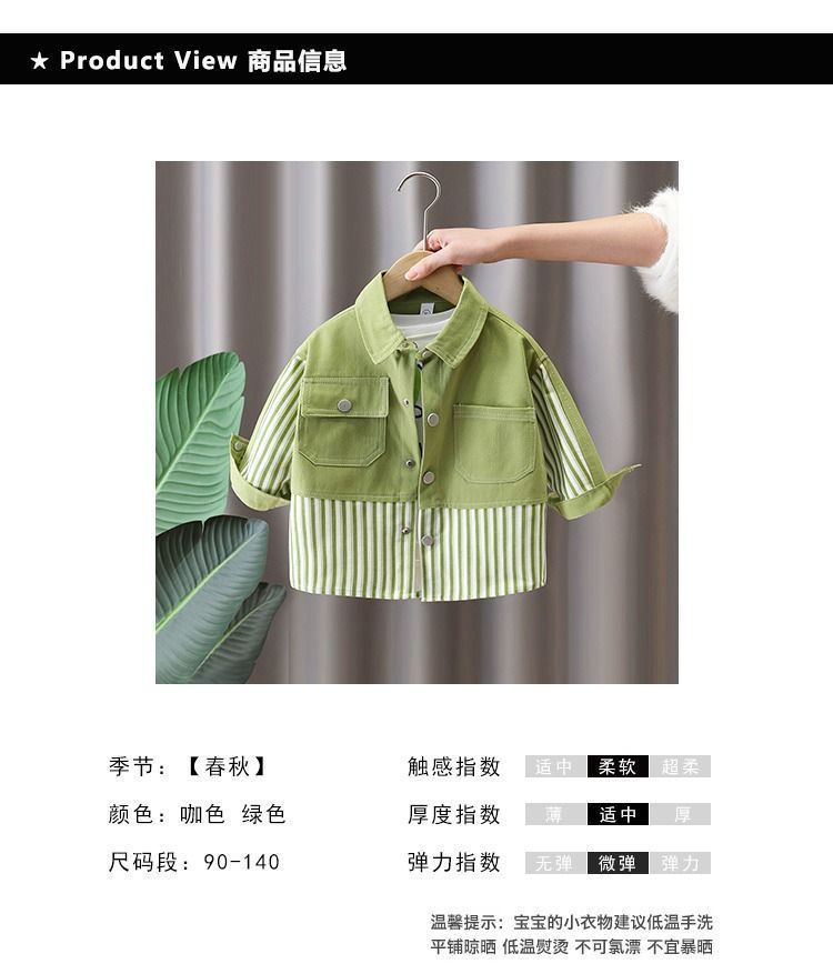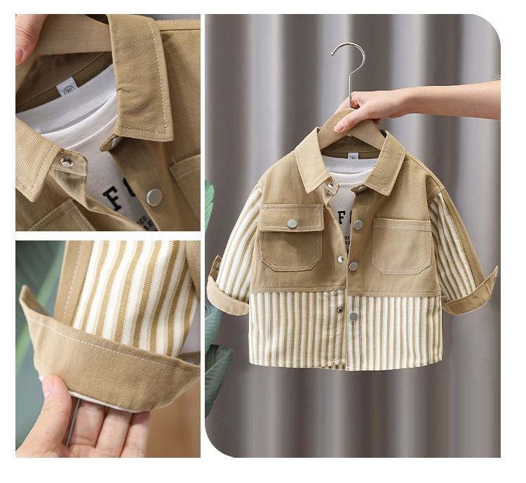 소년 봄 코트 2025 새로운 서양식 아기 바느질 줄무늬 최고 어린이 봄과 가을 튀김 거리 셔츠 트렌디스토어 가기