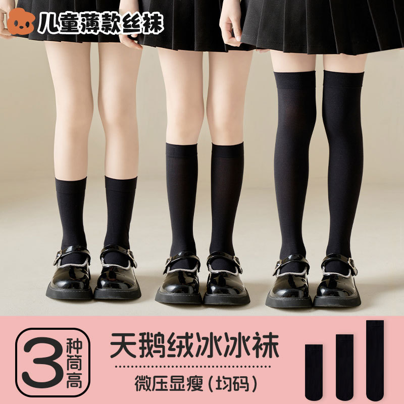 어린이 스타킹 봄과 여름 얇은 남녀 초등학생 흑백 댄스 공연 키가 큰 튜브 무릎 높이 아이스 실크 스타킹스토어 가기