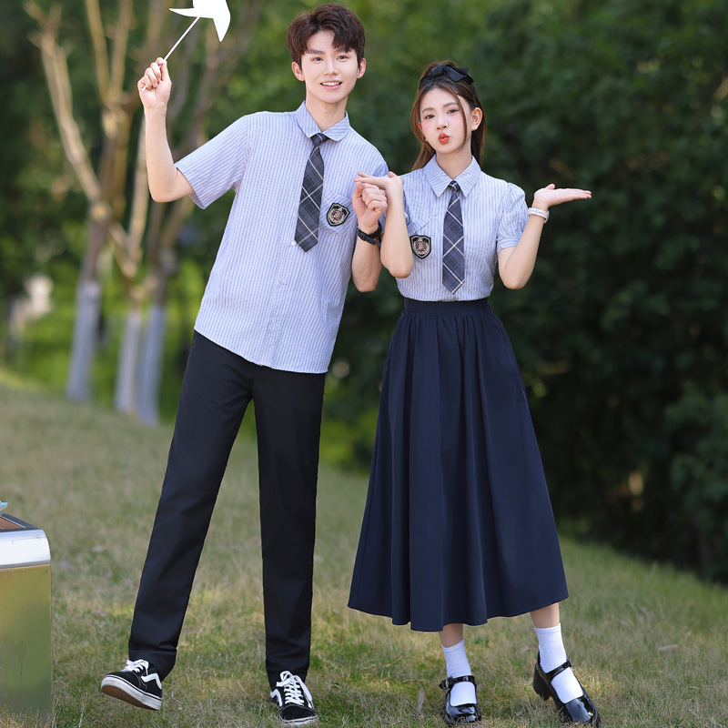 2025 커플 의류 여름 대학 스타일 학생 남녀 반팔 JK 셔츠 세트 클래스 옷스토어 가기