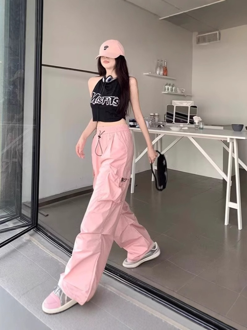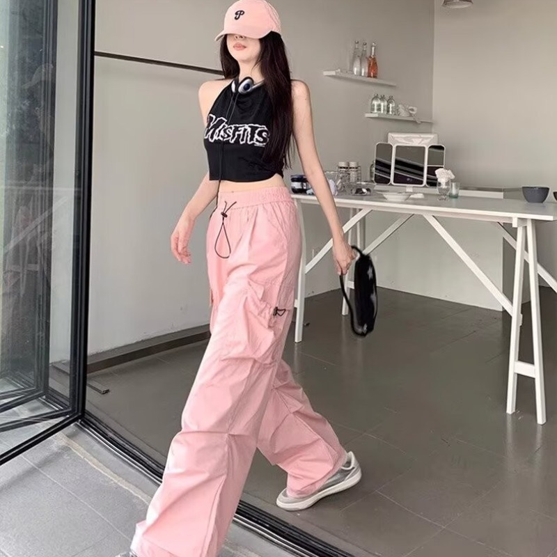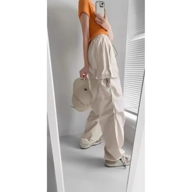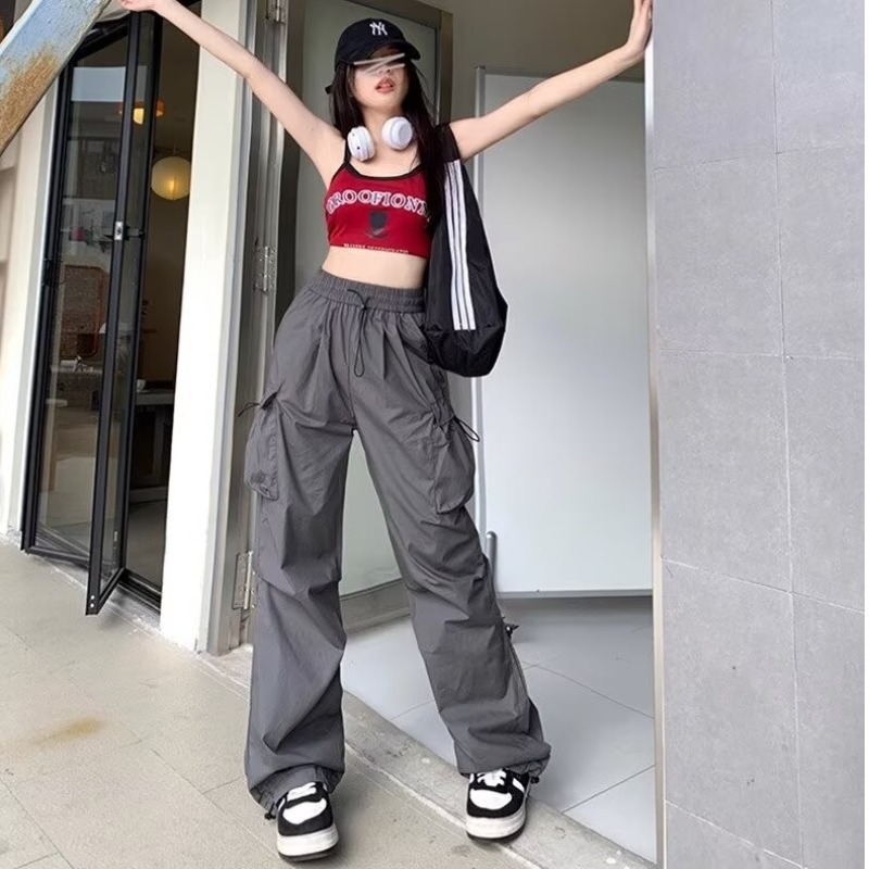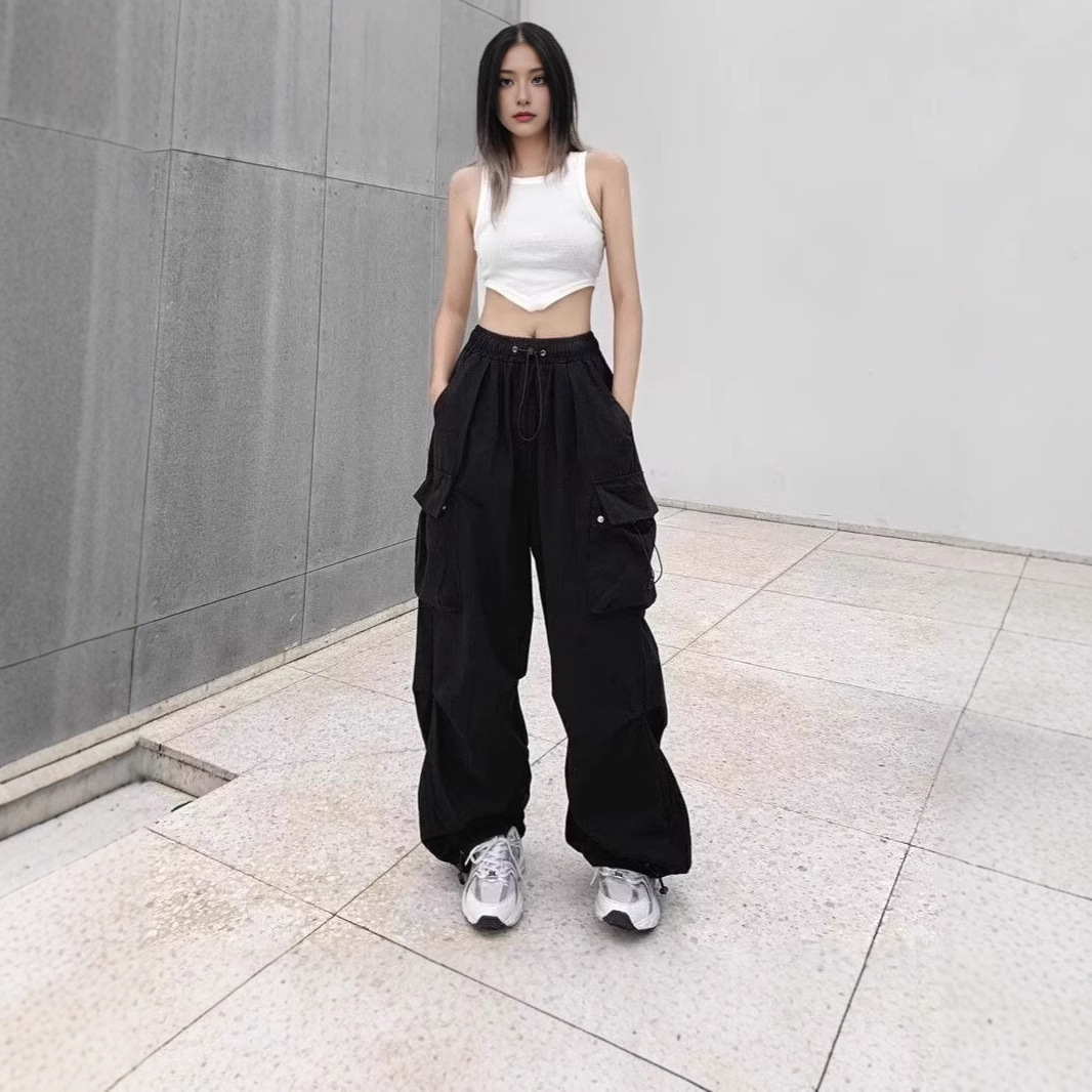 봄가을 작업복 바지 패션 캐주얼 하이웨이스트 블랙 낙하산부대 스타일 루즈핏 소형 키작은 사람용 재즈댄스 캐주얼 다용도 바지스토어 가기