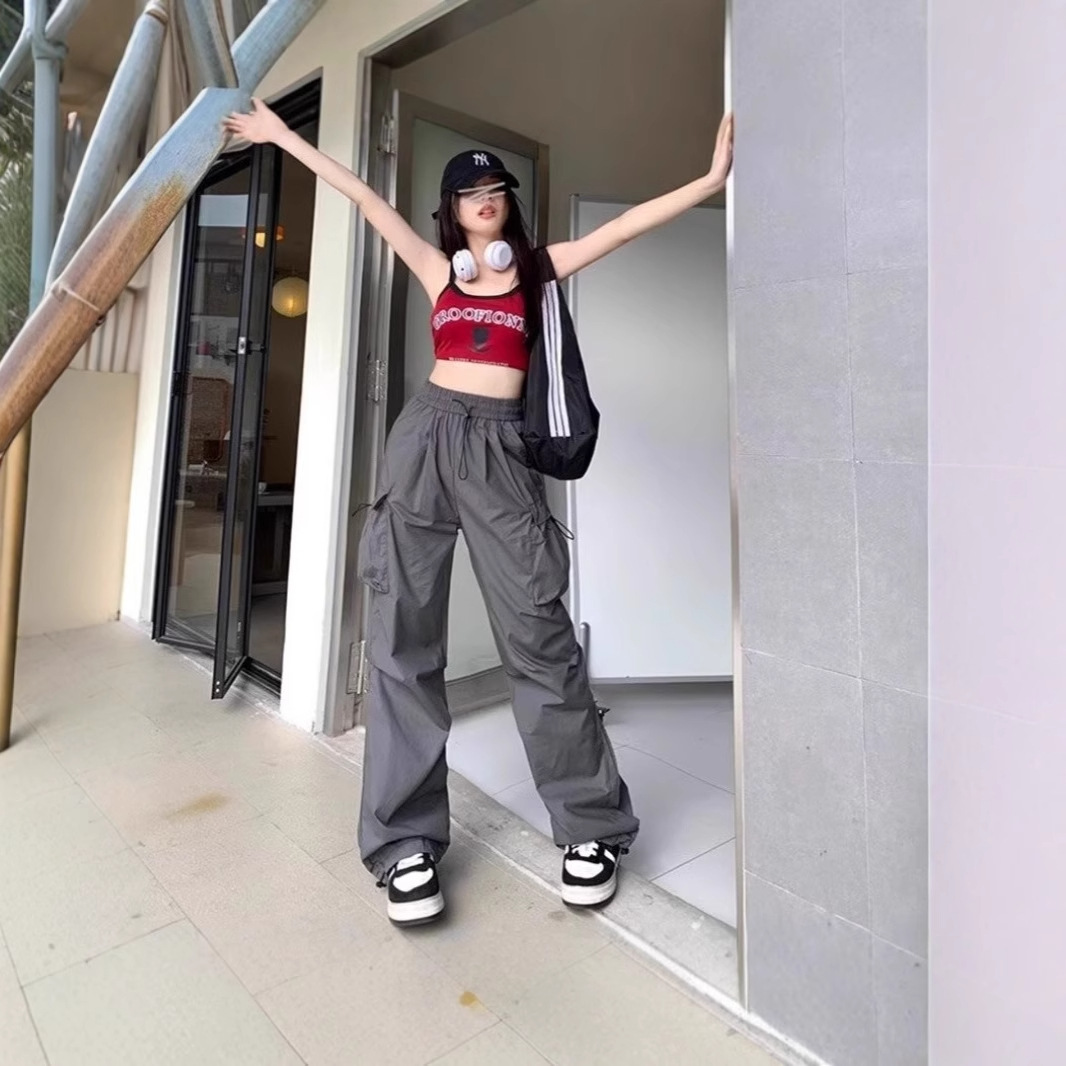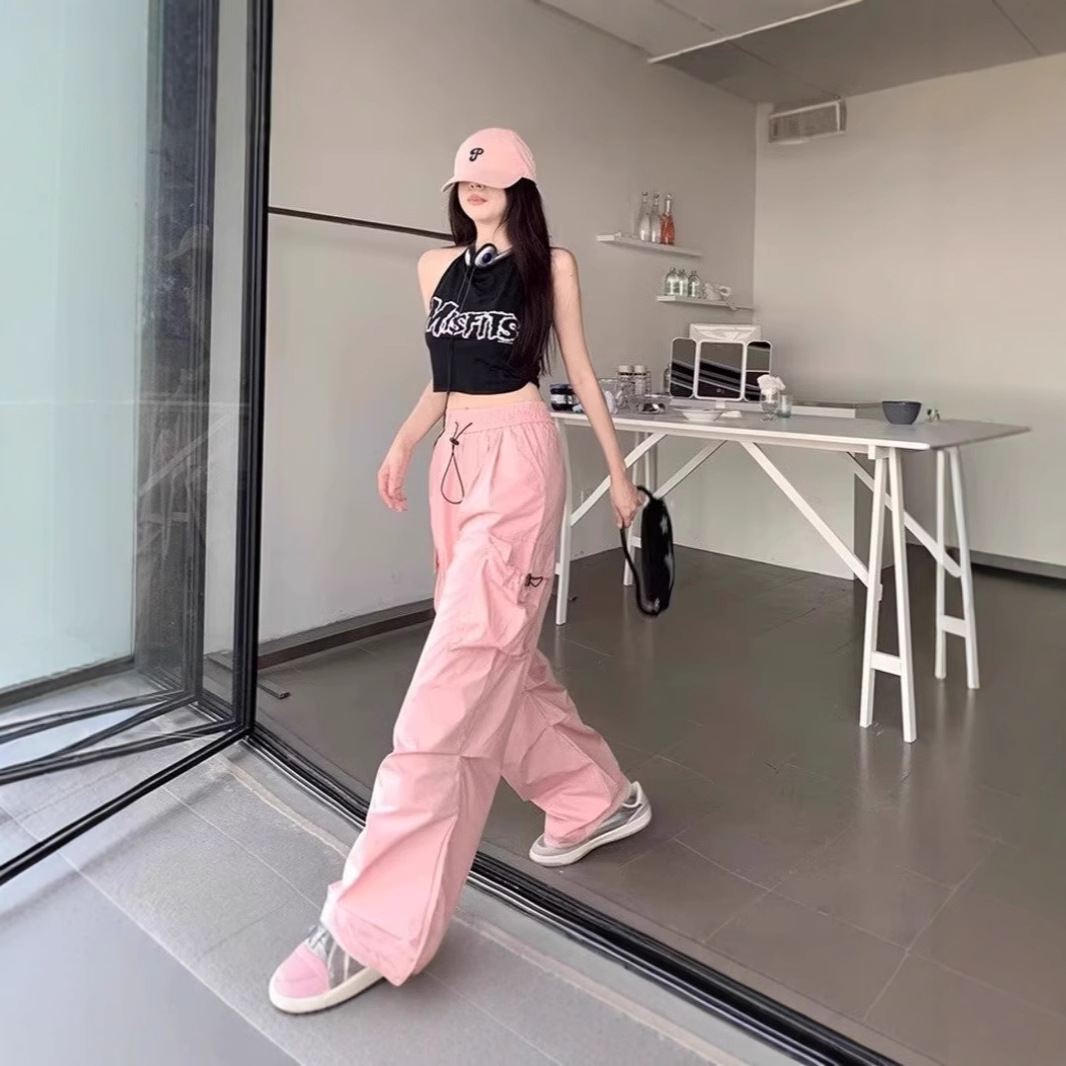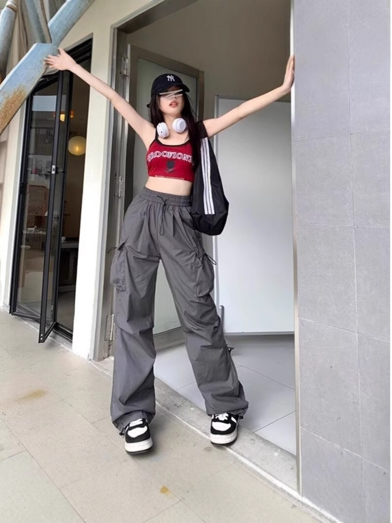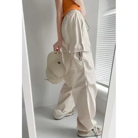 봄가을 작업복 바지 패션 캐주얼 하이웨이스트 블랙 낙하산부대 스타일 루즈핏 소형 키작은 사람용 재즈댄스 캐주얼 다용도 바지스토어 가기