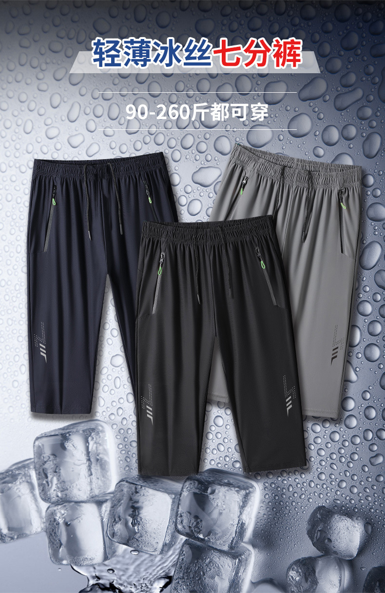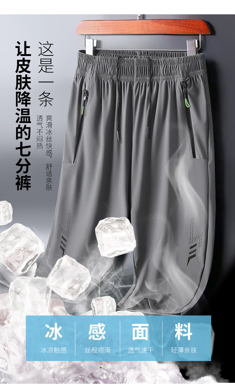 캐주얼 올 매치 아이스 실크 남자 카프리 바지 느슨한 스트레치 플러스 사이즈 스포츠 바지 통기성 얇은 농구 바지